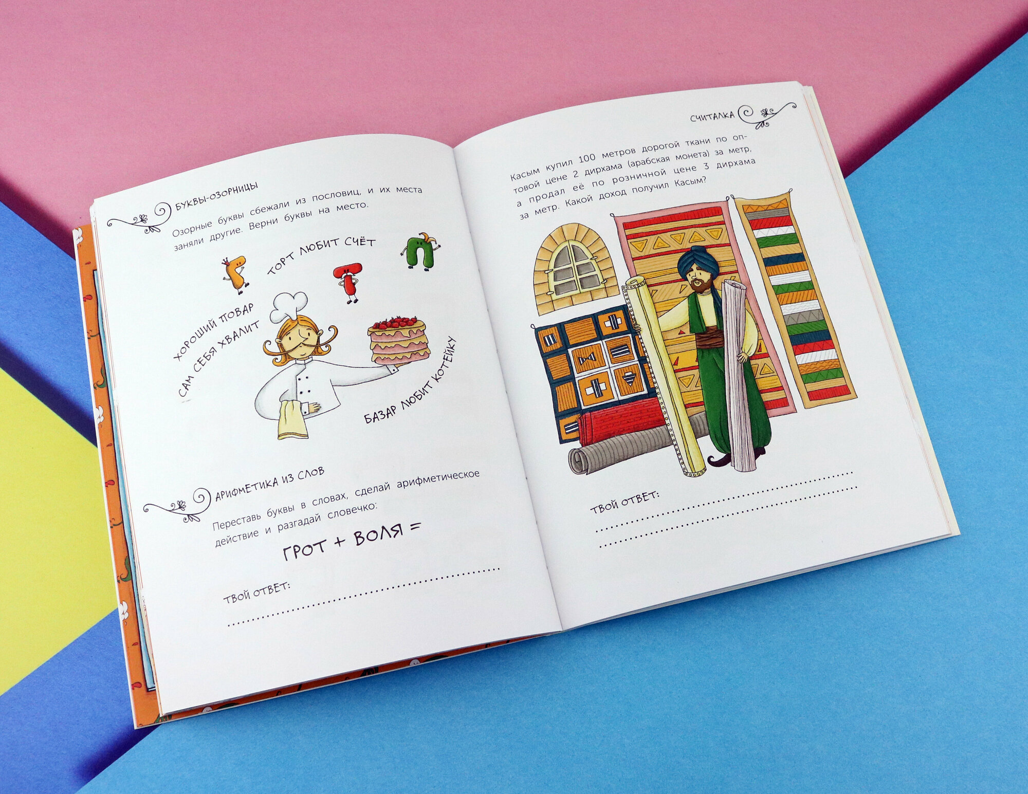 Любим разные активити, потому что они и время хорошо занимают,и пользу приносят. Эта книжка отличается от стандартных книг с заданиями тем, что ещё и эстетически красивая! Обычно в книгах этого направления довольно примитивные иллюстрации. Здесь же каждый разворот и красочный, и содержательный. Художник хороший! Однако и текст без внимания оставить нельзя. Все написано интересно и, главное, понятно. Видно, что человек, составлявший задания, разбирается в теме. Важные экономические понятия объясняются на примерах из жизни сказочных персонажей. Пожалуй, лучшее в этой книге то, что ребенок знакомится с новым через привычное и любимое. В общем, «Сказочная экономика» определенно заслуживает внимания