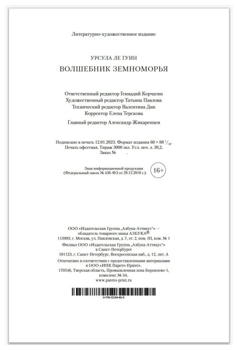 Книга: Волшебник Земноморья (Урсула Ле Гуин); Азбука, 2024