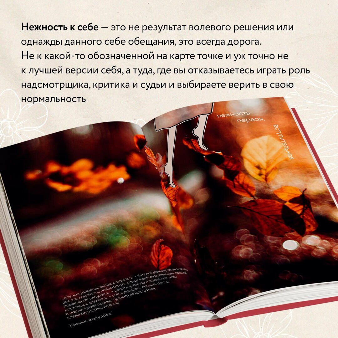 Автор книги Ольга Примаченко - психолог, журналист, экс-главный редактор Lady.Tut и автор блога Gnezdo - говорит с читателем о важном: о принятии своих чувств, желаний и тела, о расставлении приоритетов и границ, о создании питательного пространства вокруг себя, а также об экологичном взаимодействии с миром и людьми. В конце книги читателя ждет 31-дневная практика нежности к себе.