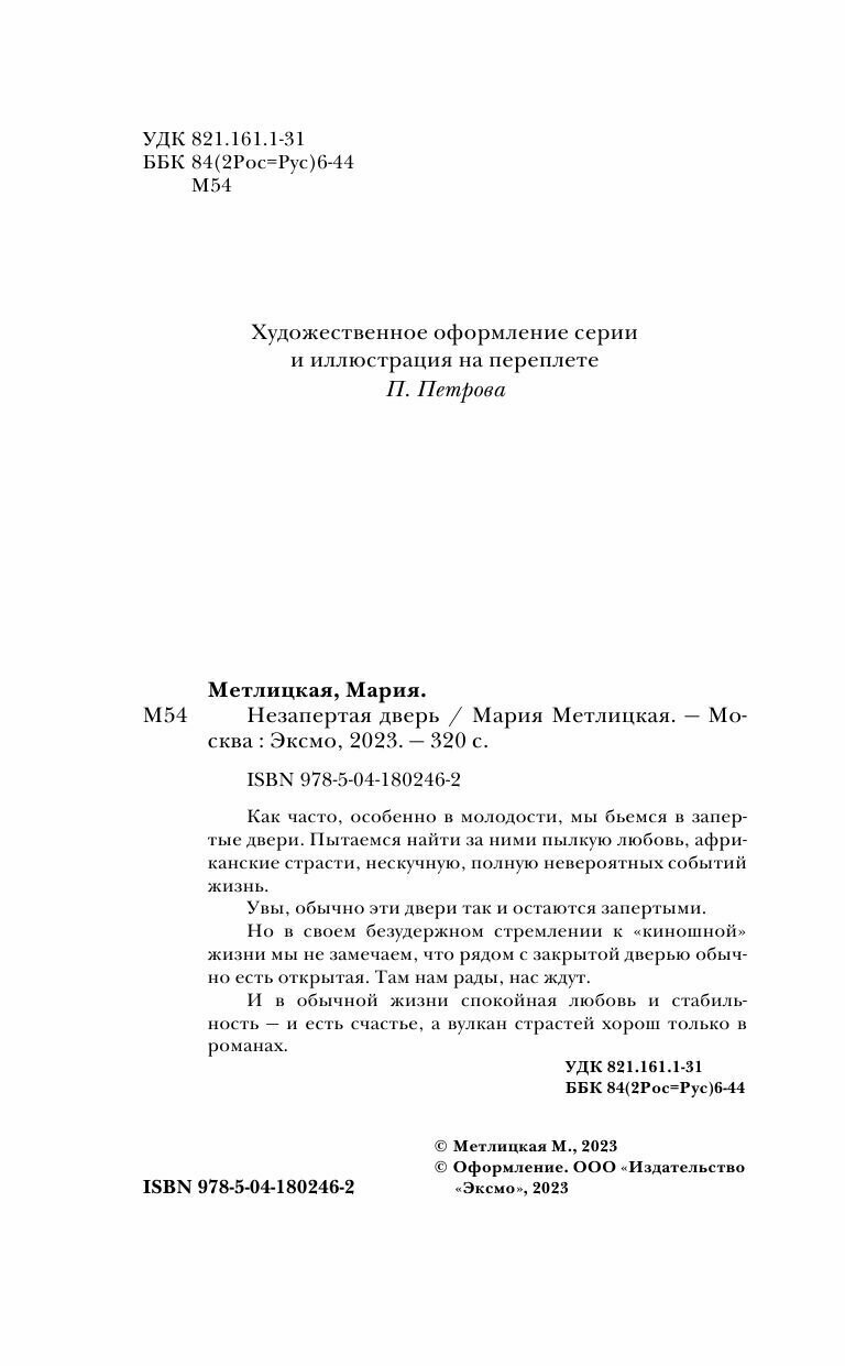 Книга: Незапертая дверь (Метлицкая Мария Робертовна); ООО "Издательство "Эксмо", 2023