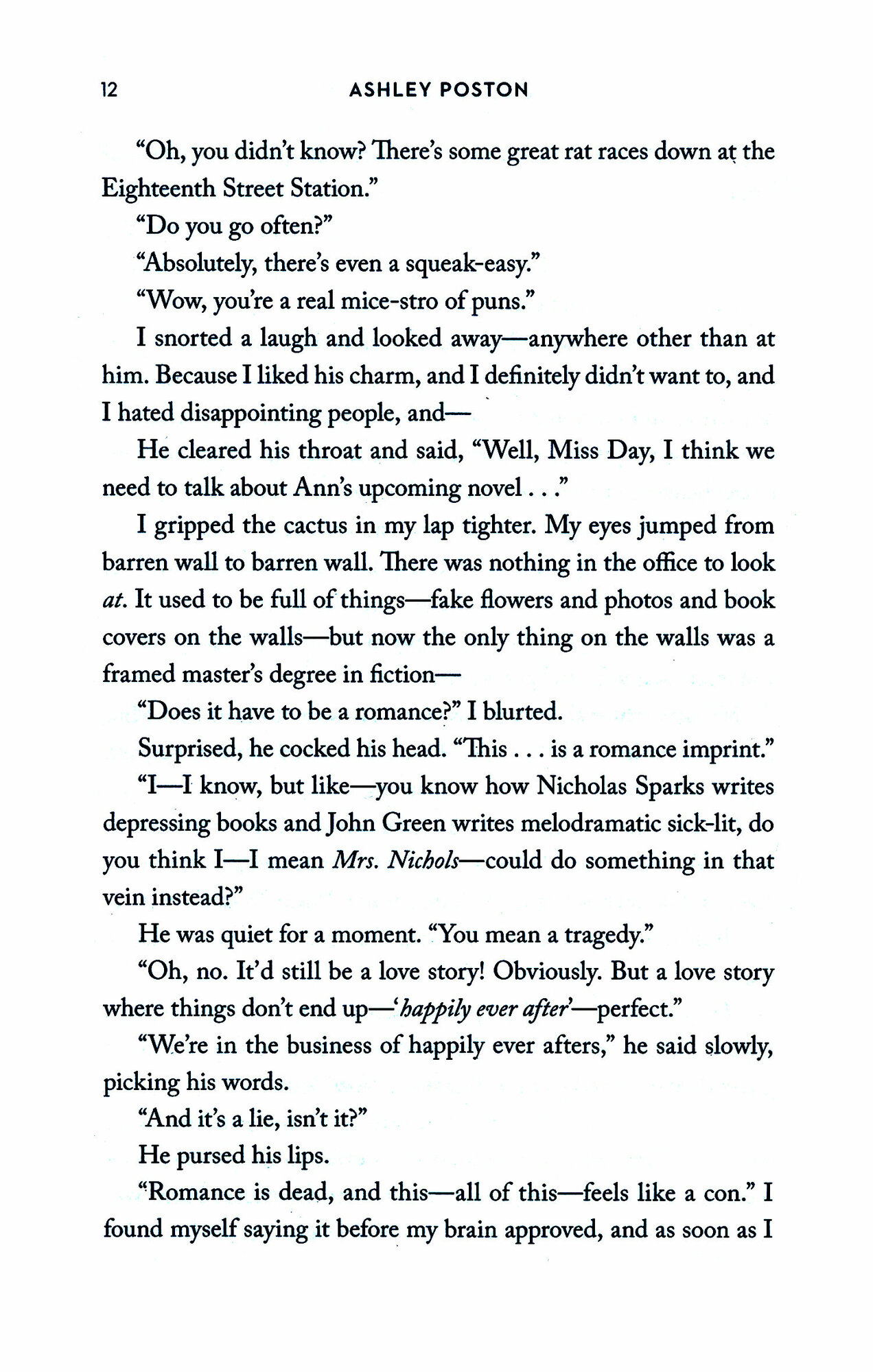 Florence Day is a ghost-writer with one big problem. She’s supposed to be penning swoon-worthy novels for a famous romance author but, after a bad break-up, Florence no longer believes in love. And when her strict (but undeniably hot) new editor, Benji Andor, won’t give her an extension on her book deadline, Florence prepares to kiss her career goodbye.