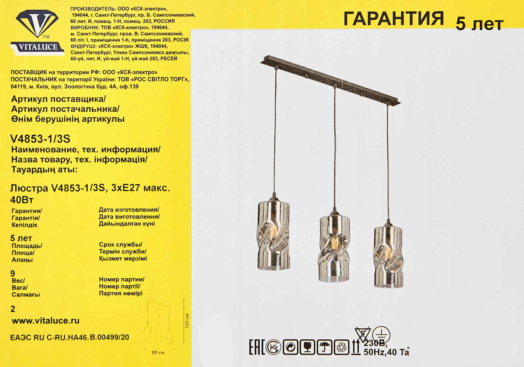 | Тип продукта | Люстра подвесная |