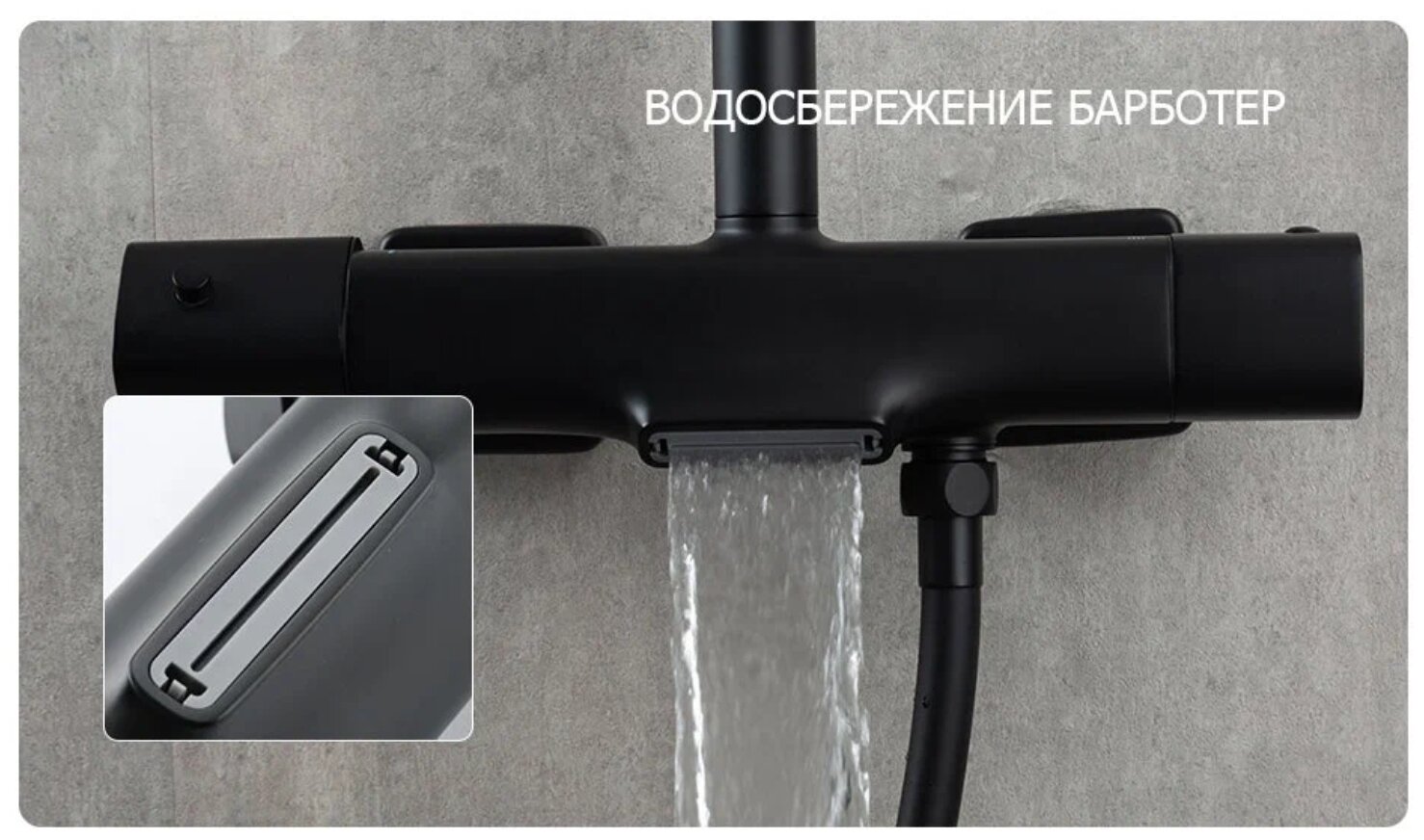 Душевая система Gappo G2495-76 с термостатом Черная матовая