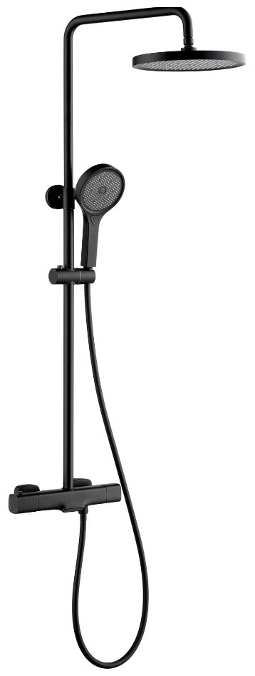 | Комплект поставки | штанга для душа, термостатический смеситель с изливом, душевой шланг, ручная лейка, держатель для лейки, тропический круглый верхний душ, крепление |