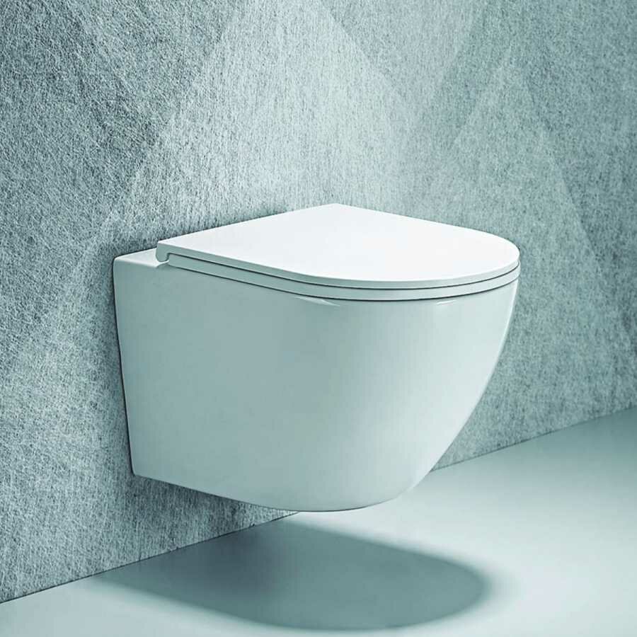 Подвесной унитаз Agger AT03100, унитаз подвесной безободковый: санфарфор, скрытая система монтажа. Обтекаемая форма корпуса, не позволяющая скапливаться пыли, ультратонкое и быстросъёмное сиденье из дюропласта с функцией плавного закрывания Soft-close. Тип смыва - каскадный. Чаша унитаза, крышка-сиденье, инструкция.