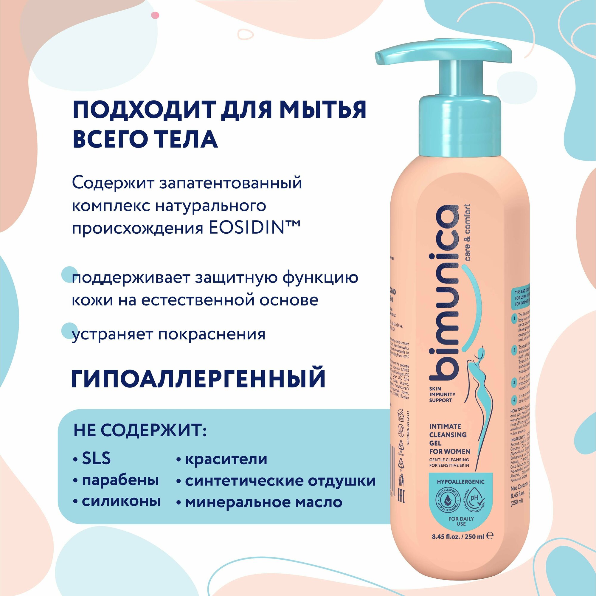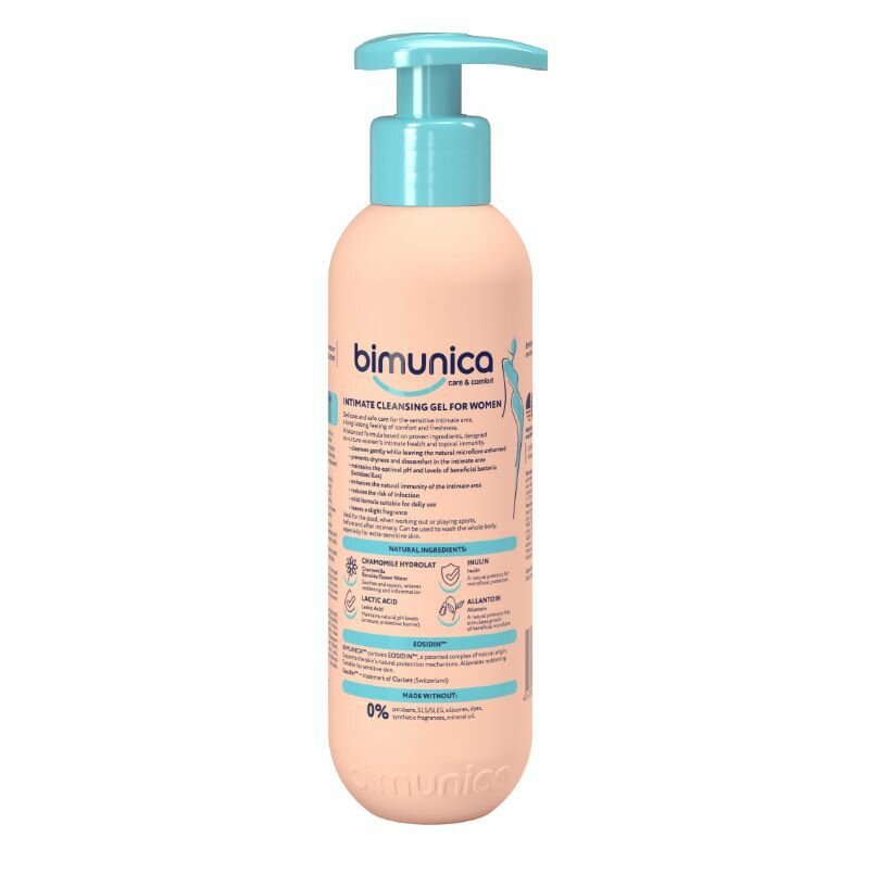 Обеспечивает деликатный и безопасный уход за чувствительной интимной зоной, дарит ощущение комфорта и свежести надолго. Сбалансированная формула на основе проверенных компонентов создана для поддержания женского интимного здоровья и местного иммунитета. Гель мягко очищает, не нарушая полезную микрофлору, предотвращает сухость и дискомфорт в интимной зоне и поддерживает оптимальный уровень полезных бактерий и pH. Средство усиливает естественную защиту интимной зоны и снижает риск возникновения инфекций. Гель обладает легким дезодорирующим свойством, а его мягкая формула подходит для ежедневного использования. Идеален при посещении бассейна, занятий спортом, до и после интимной близости. Может использоваться для мытья всего тела, особенно при повышенной чувствительности кожи. BIMUNICA™ содержит запатентованный комплекс натурального происхождения EOSIDIN™, который поддерживает защитную функцию кожи на естественной основе, устраняет покраснения и идеально подходит для чувствительной кожи. В состав входят природные компоненты: молочная кислота (для поддержания естественного pH микрофлоры (природного защитного барьера)), инулин (натуральный пребиотик, стимулирующий рост полезной микрофлоры), аллантоин (натуральное противомикробное вещество из корней лекарственного окопника), гидролат ромашки (успокаивает и восстанавливает, снимая покраснения и воспаления). В продукте отсутствуют: сульфаты, парабены, силиконы, красители, синтетические отдушки и минеральное масло. Гель подходит как для ухода за чувствительной кожей, так и для базового ежедневного ухода.