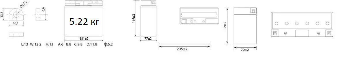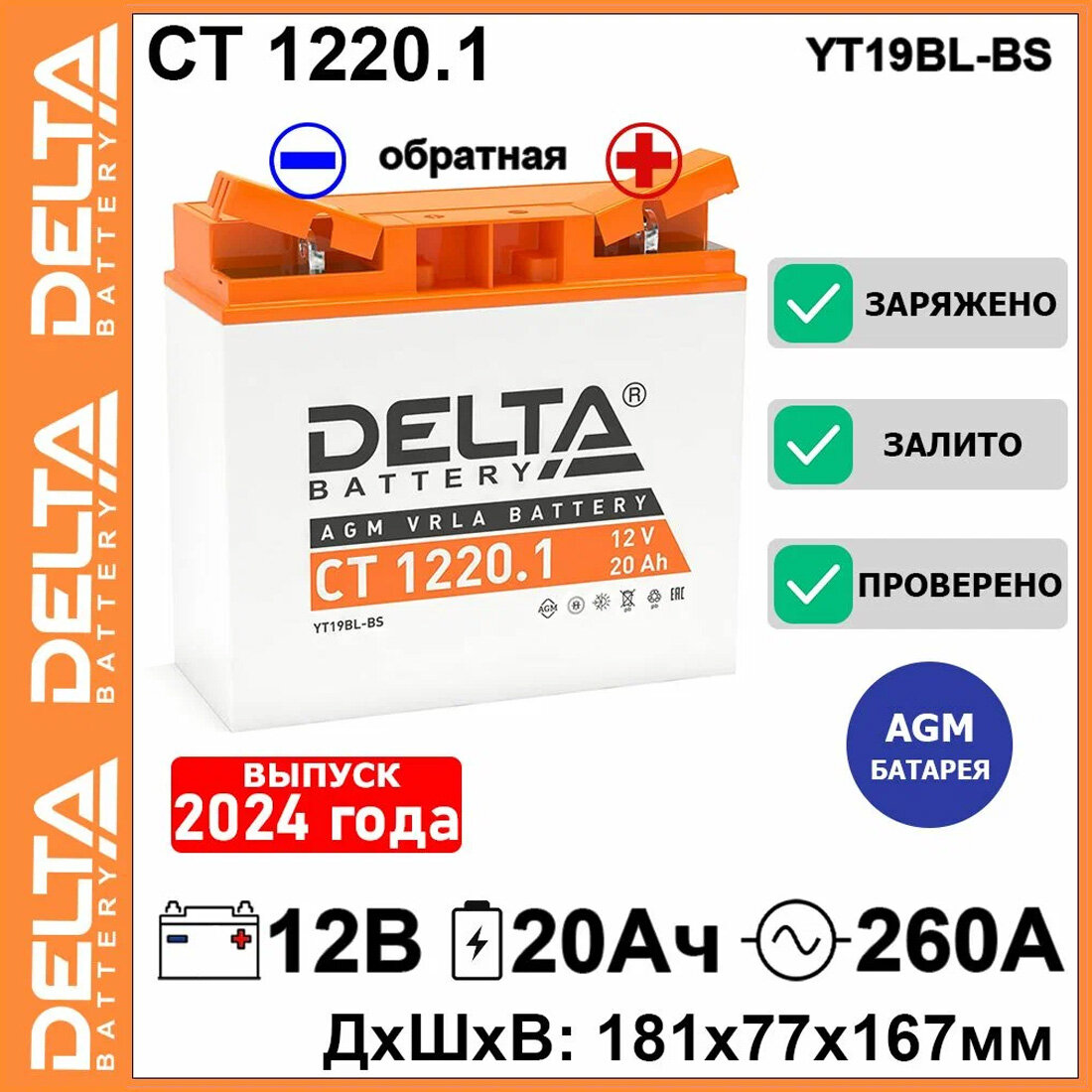 CT 1220.1 260А Обратная полярность 20 Ач (181x77x167) Delta (YT19BL-BS)