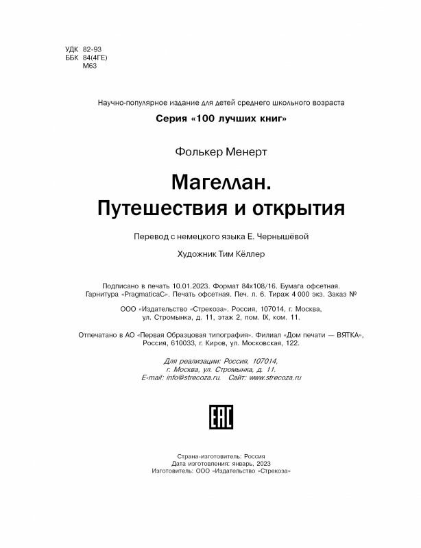Сервис сравнения цен СкидкаГИД предлагает сравнить цены на товар «Книга: Магеллан. Путешествия и открытия (Фолькер Менерт); Стрекоза, 2023»