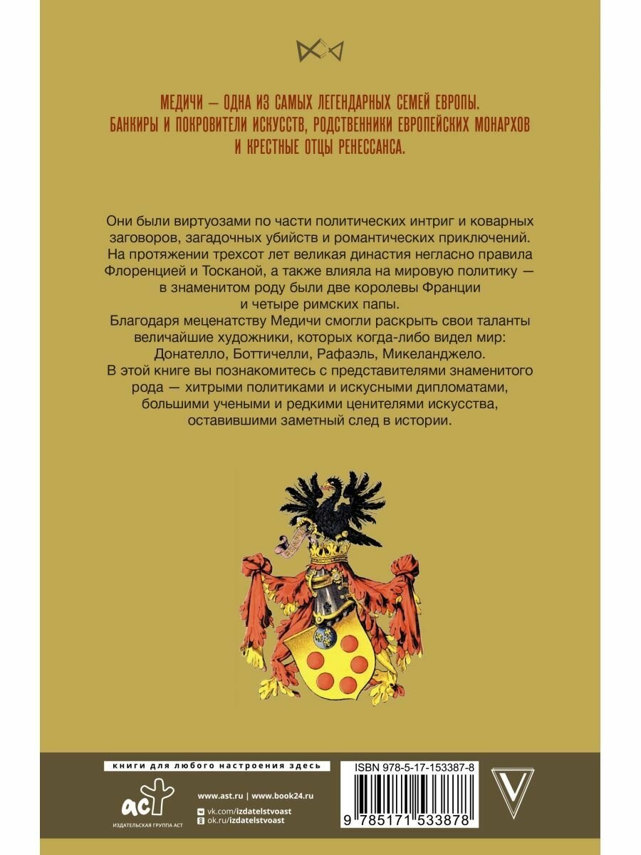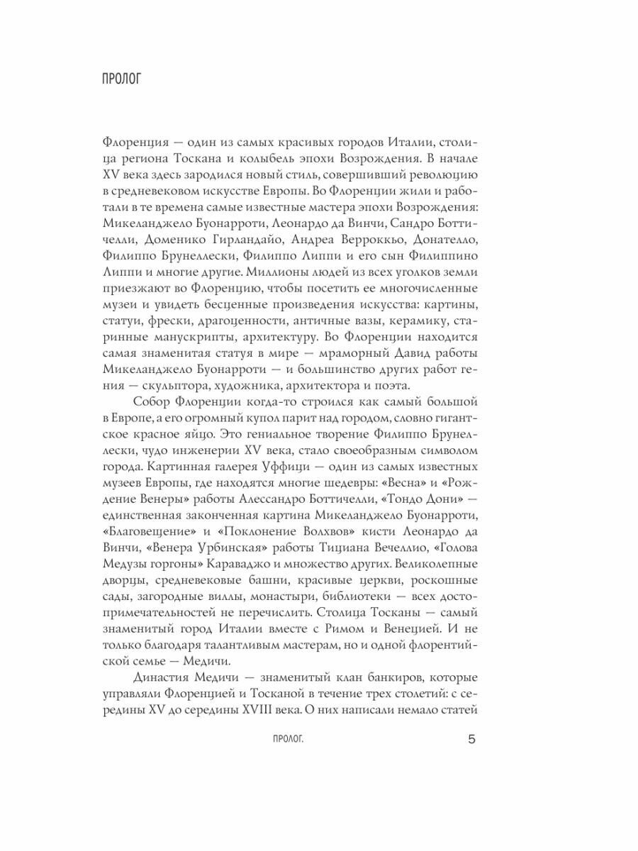 Они были виртуозами по части политических интриг и коварных заговоров, загадочных убийств и романтических приключений. На протяжении трехсот лет великая династия негласно правила Флоренцией и Тосканой, а также влияла на мировую политику – в знаменитом роду были две королевы Франции и четыре римских папы.