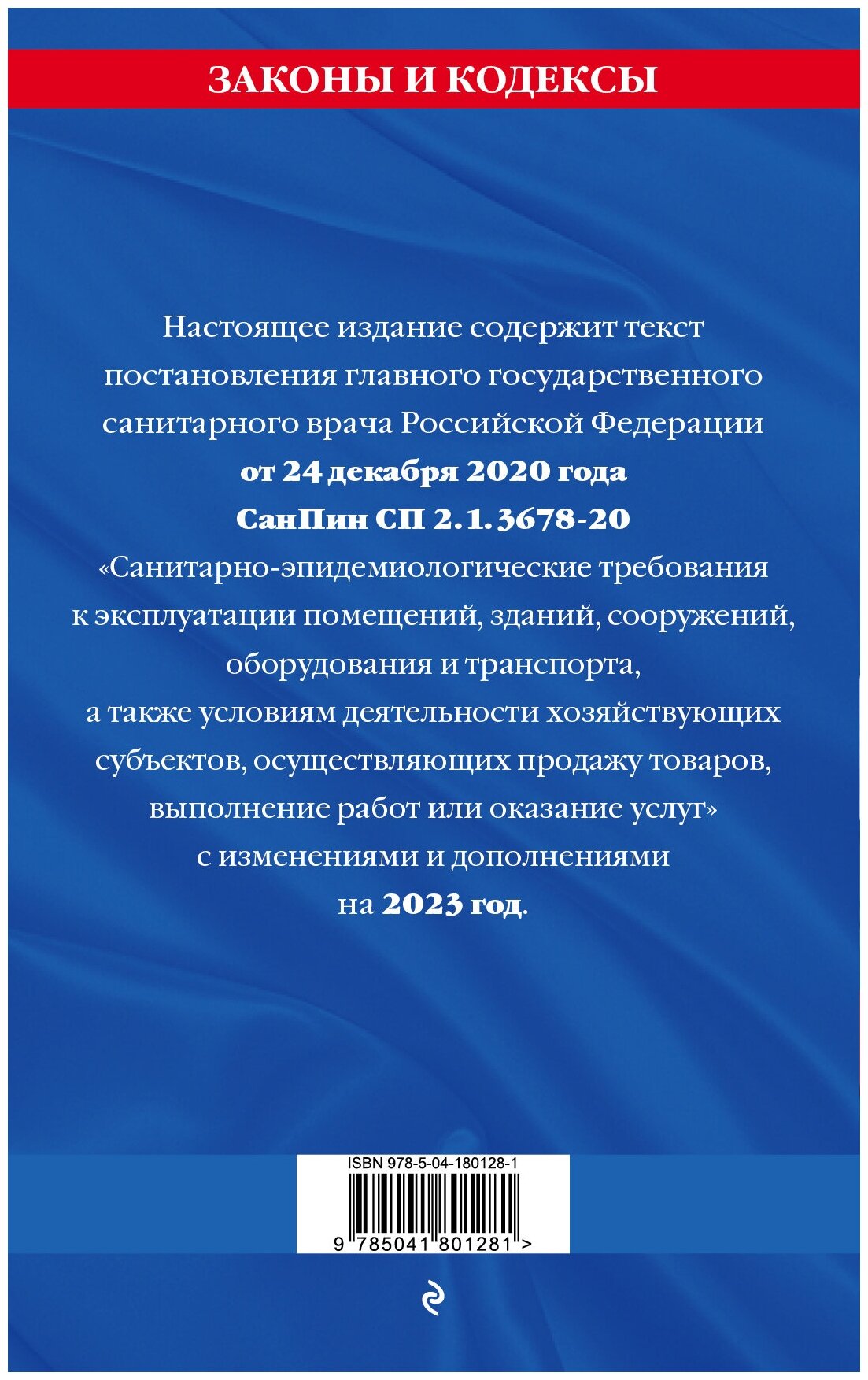 Настоящее издание содержит текст постановления гланого госудрственного санитарного врача Российской Федерации от 24 декабря 2020 года ""Санитарно-эпидемиологические требования к эксплуатации помещений, зданий, сооружений, оборудования и транспорта, а также условиям деятельности хозяйствующих субъектов, осуществляющих продажу товаров, выполнение работ или оказание услуг"" с изменениями и дополнениями на 2023 год.