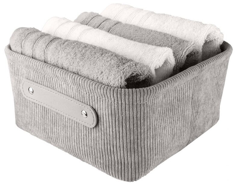 Корзина Bedford – это не просто декоративный аксессуар, но и вместительное изделие для хранения украшений, аксессуаров и косметических принадлежностей в ванной комнате. Корзина изготовлена из прочного полиэстера и имеет вельветовую фактуру, которая придает ей современный вид. Ручки из искусственной кожи облегчают переноску.