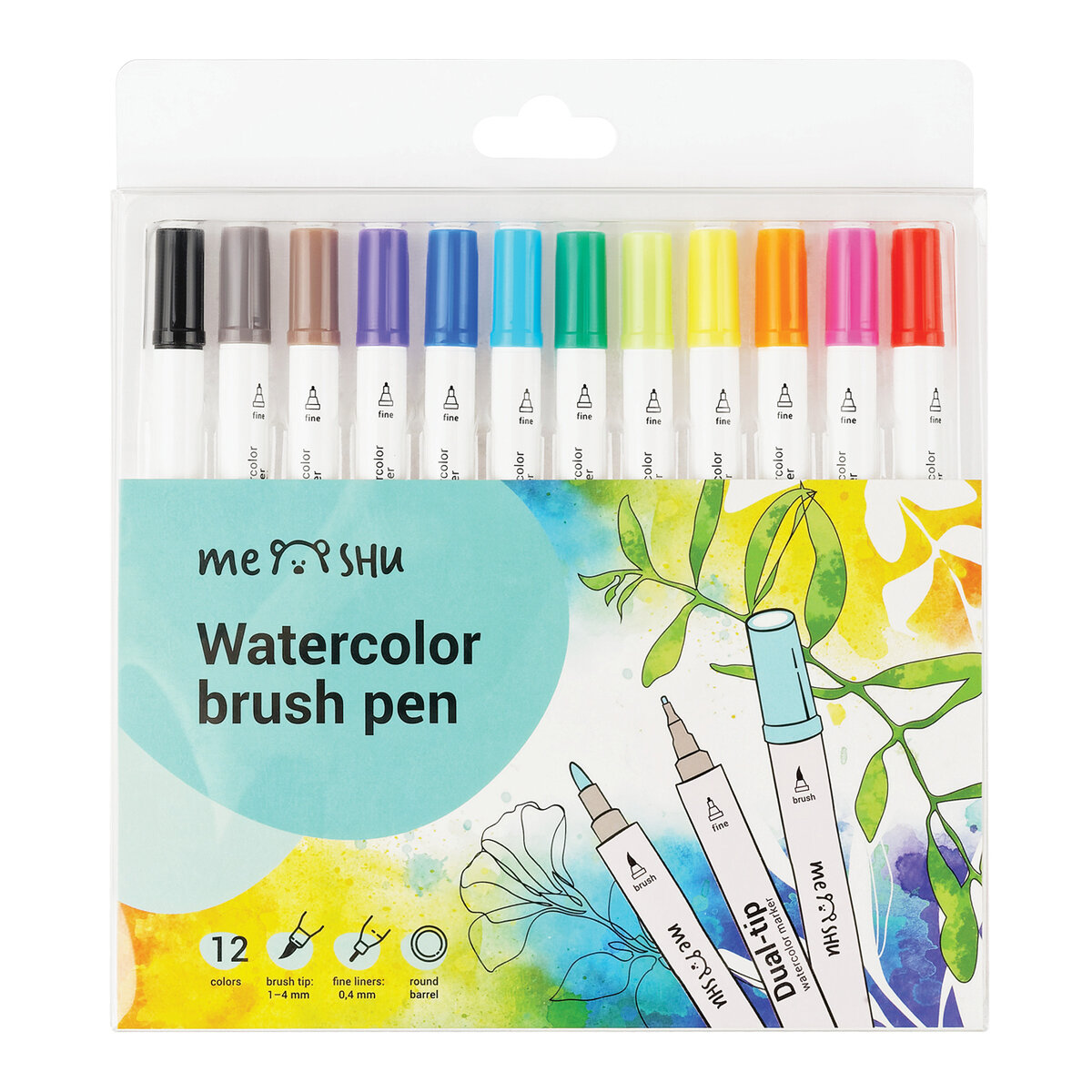 Набор маркеров акварельных MESHU 12 цв. основные цвета (MS_53479)