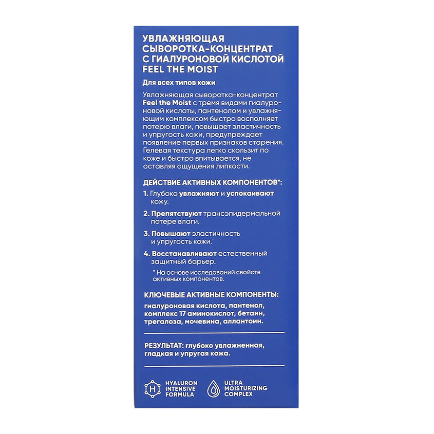 Сыворотка-концентрат Feel The Moist мгновенно возвращает к жизни обезвоженную кожу. Эффективно восстанавливает баланс влаги и препятствуют ее трансэпидермальной потере. Успокаивает и ускоряет процессы регенерации. Кожа становится более гладкой и эластичной, морщины менее заметны.