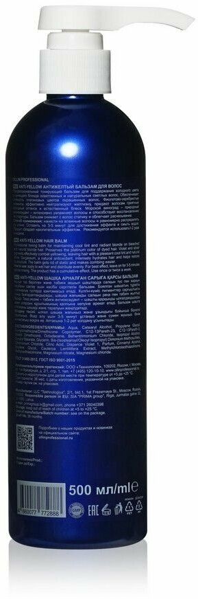 На сегодняшний день товар «Антижелтый бальзам для волос Anti-Yellow Balm 500 мл OLLIN Professional (ЭХ99989441325)» можно купить с кешбеком в 1 магазине: Яндекс.Маркет