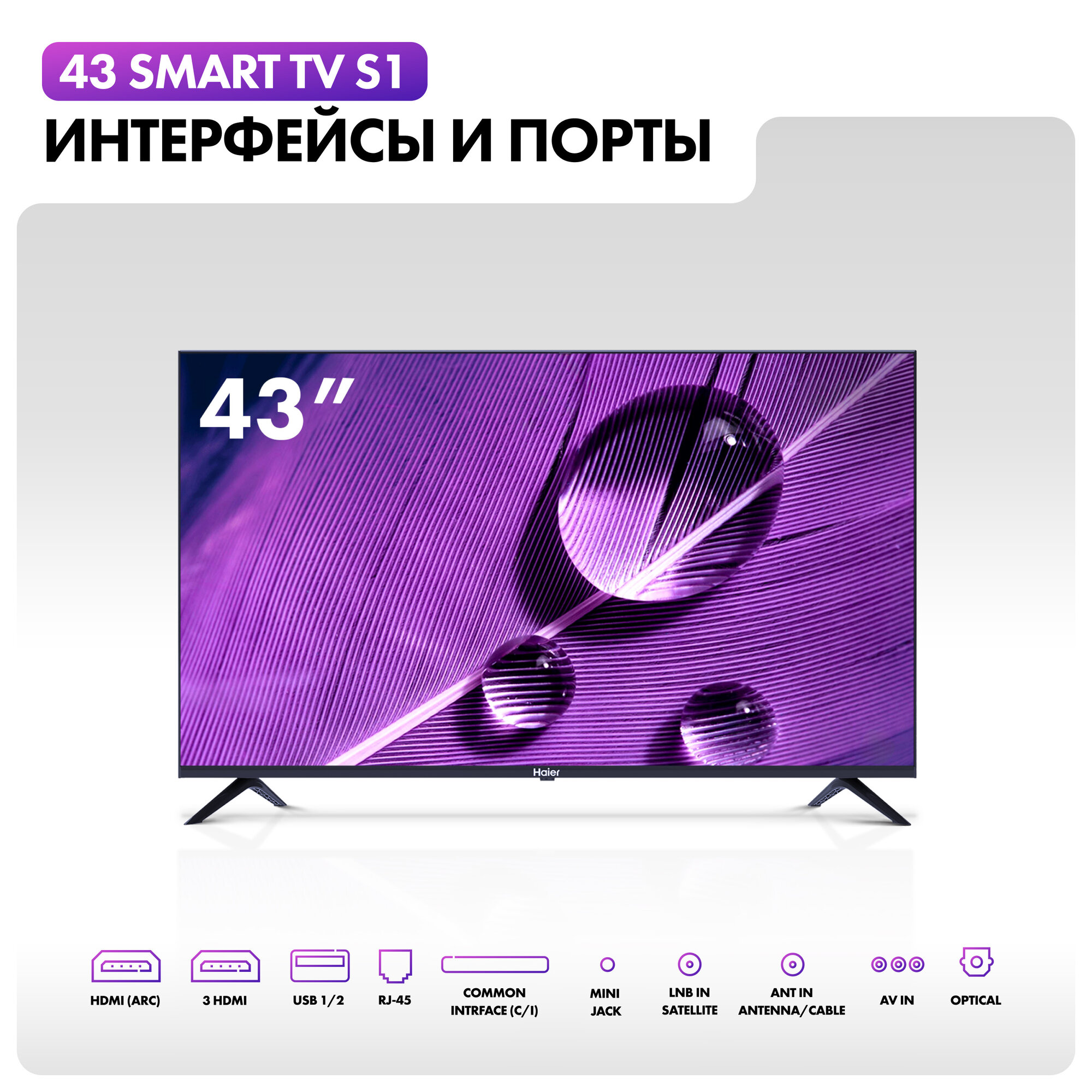 Телевизор 43" Haier Smart TV S1 черный 3840x2160 60 Гц Wi-Fi Smart TV 4 х HDMI 2 х USB RJ-45