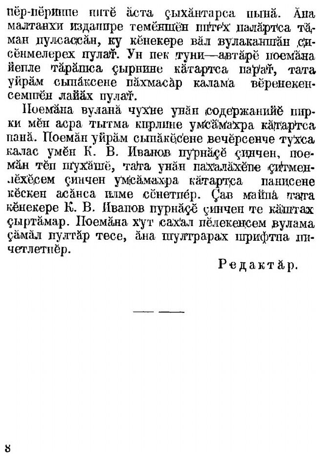 Репринт с оригинального издания на чувашском языке 1935 года.