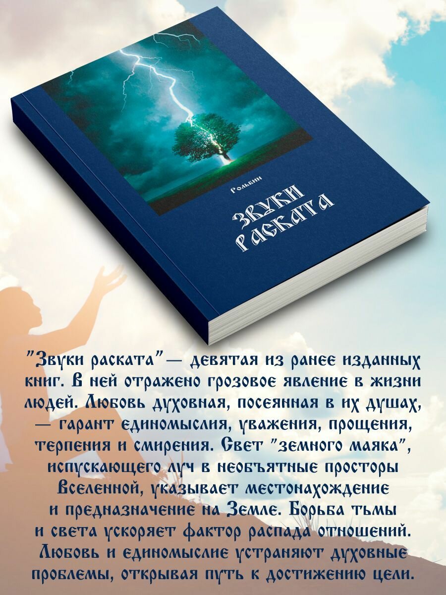 «Звуки раската» — девятая из ранее изданных книг. В ней отражено грозовое явление в жизни людей. Любовь духовная, посеянная в их душах, — гарант единомыслия, уважения, прощения, терпения и смирения. Свет «земного маяка», испускающего луч в необъятные просторы Вселенной, указывает местонахождение и предназначение на Земле. Борьба тьмы и света ускоряет фактор распада отношений. Любовь и единомыслие устраняют духовные проблемы, открывая путь к достижению цели.