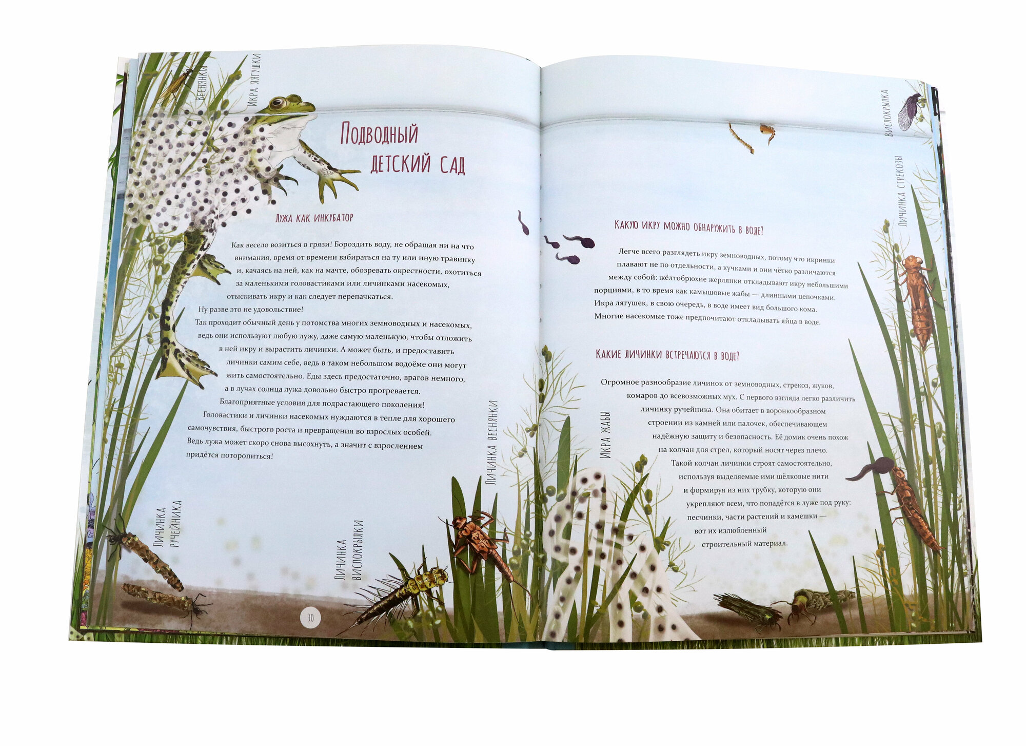 Нам предстоит узнать о них много интересного: Как головастики дышат под водой? Как стрекозам удаётся летать задом наперёд? Какие из обитателей луж видели динозавров? Правда ли, что ласточки летают низко перед дождём? Что происходит с обитателями лужи, когда она замерзает? Какую водоросль можно сломать только силой двадцати слонов? Как устроить лужу самостоятельно и как этим улучшить климат?