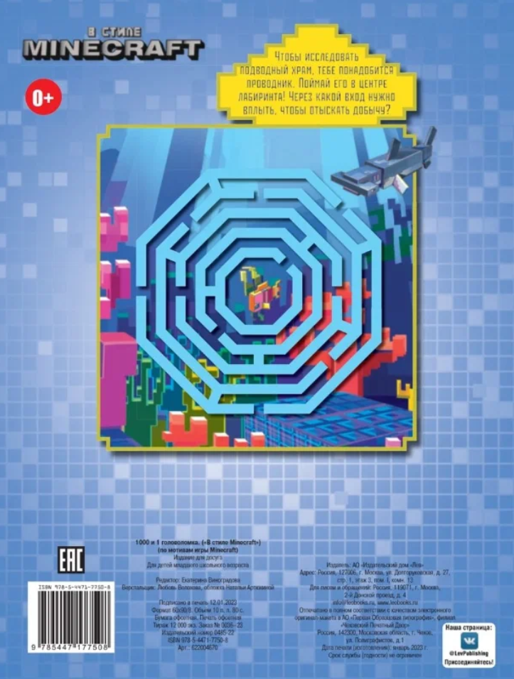 В стиле Minecraft. 1000 и 1 головоломка (Виноградова Е.); Издательский дом Лев АО, 2023