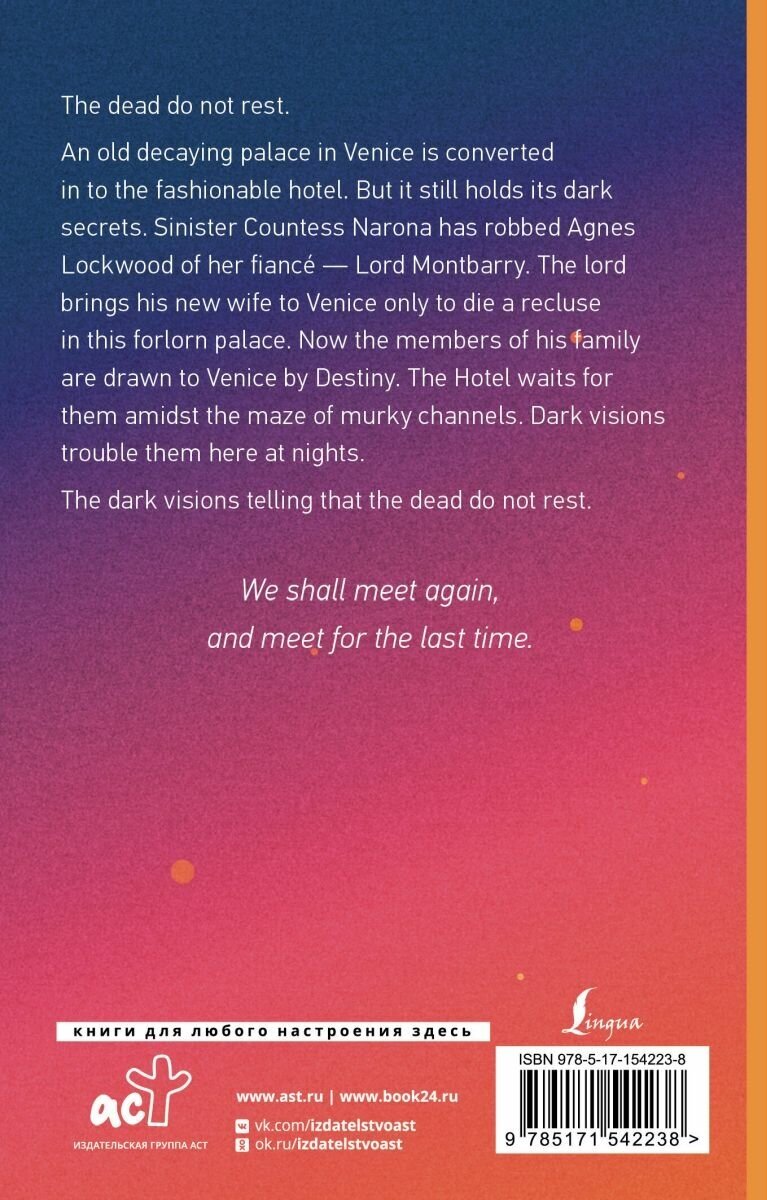 Уилки Коллинз – создатель первого детективного романа на английском языке, плодовитый писатель, мастер мистики и загадок. Его язык вполне современен и понятен, поэтому эта книга станет хорошим выбором для тех, кто хочет попробовать начать читать в оригинале. В «Таинственном отеле» вы столкнетесь с таинственной смертью и исчезновением, произошедшем в одном из старых палаццо Венеции. Старый дворец переделали в модный отель, но загадка всё ещё притягивает тех, кто связан с ней, сводя их с ума. Дерзните посетить этот отель сами, если осмелитесь.