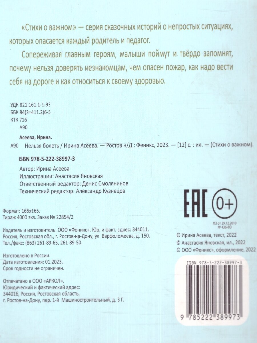 Сервис сравнения цен СкидкаГИД предлагает сравнить цены на товар «Книга: Нельзя болеть (Асеева Ирина Ивановна); Феникс-Премьер, 2023»