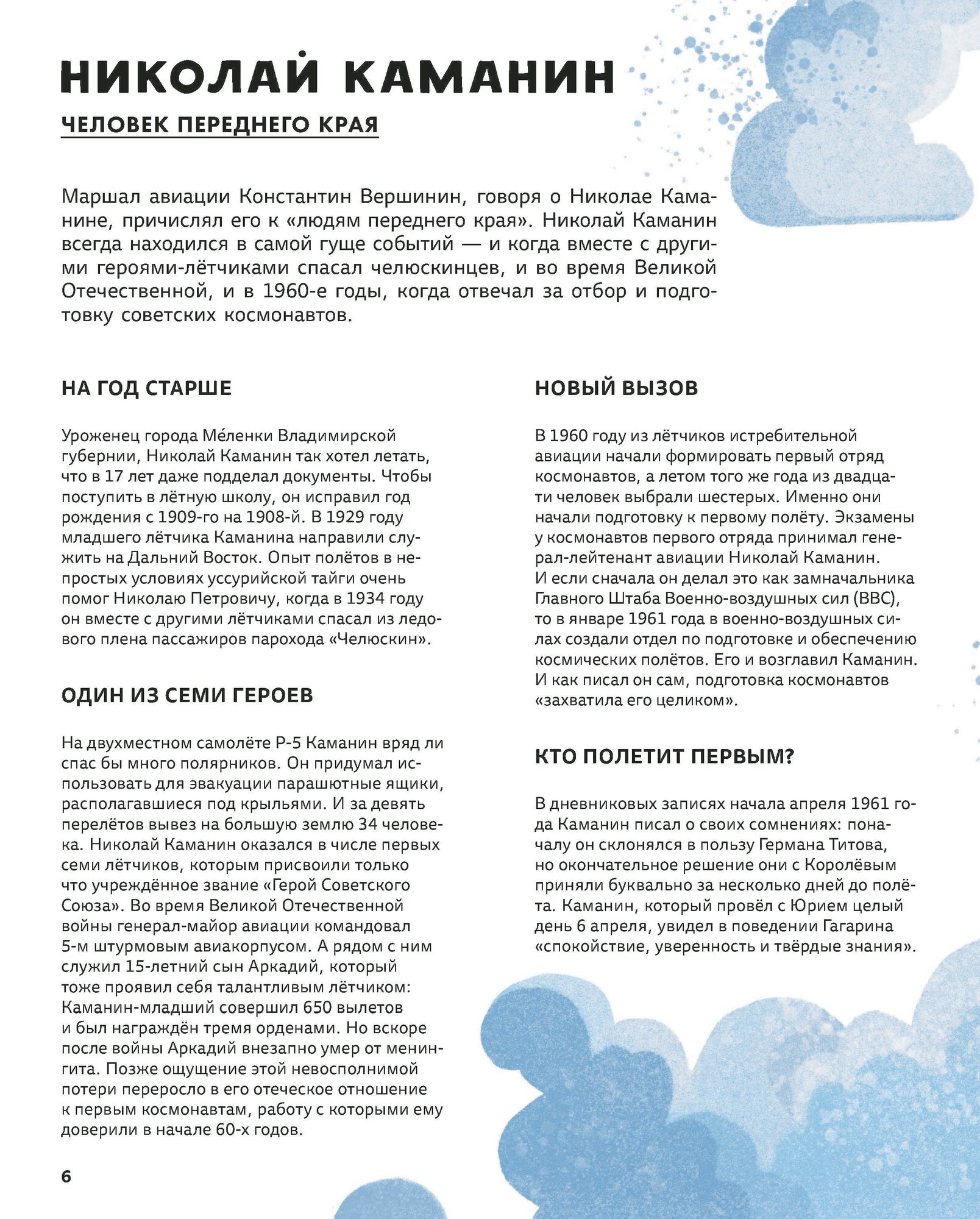 С детства интересовалась космосом и всем, что с ним связано, а теперь, будучи мамой, мечтаю привить интерес к истории космоса своим детям. С этой книжкой совсем не прогадала – в ней все события преподносятся не абстрактно, а через истории реальных людей. Приятно, что среди героев книги как громкие имена, которые мы знаем с детства, так и те, кто побывал в космосе совсем недавно.