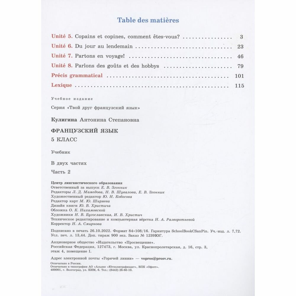 Сервис сравнения цен СкидкаГИД предлагает сравнить цены на товар «Книга: Французский язык. 5 класс. Учебник. В 2-х частях (Кулигина Антонина Степановна); Просвещение, 2023»
