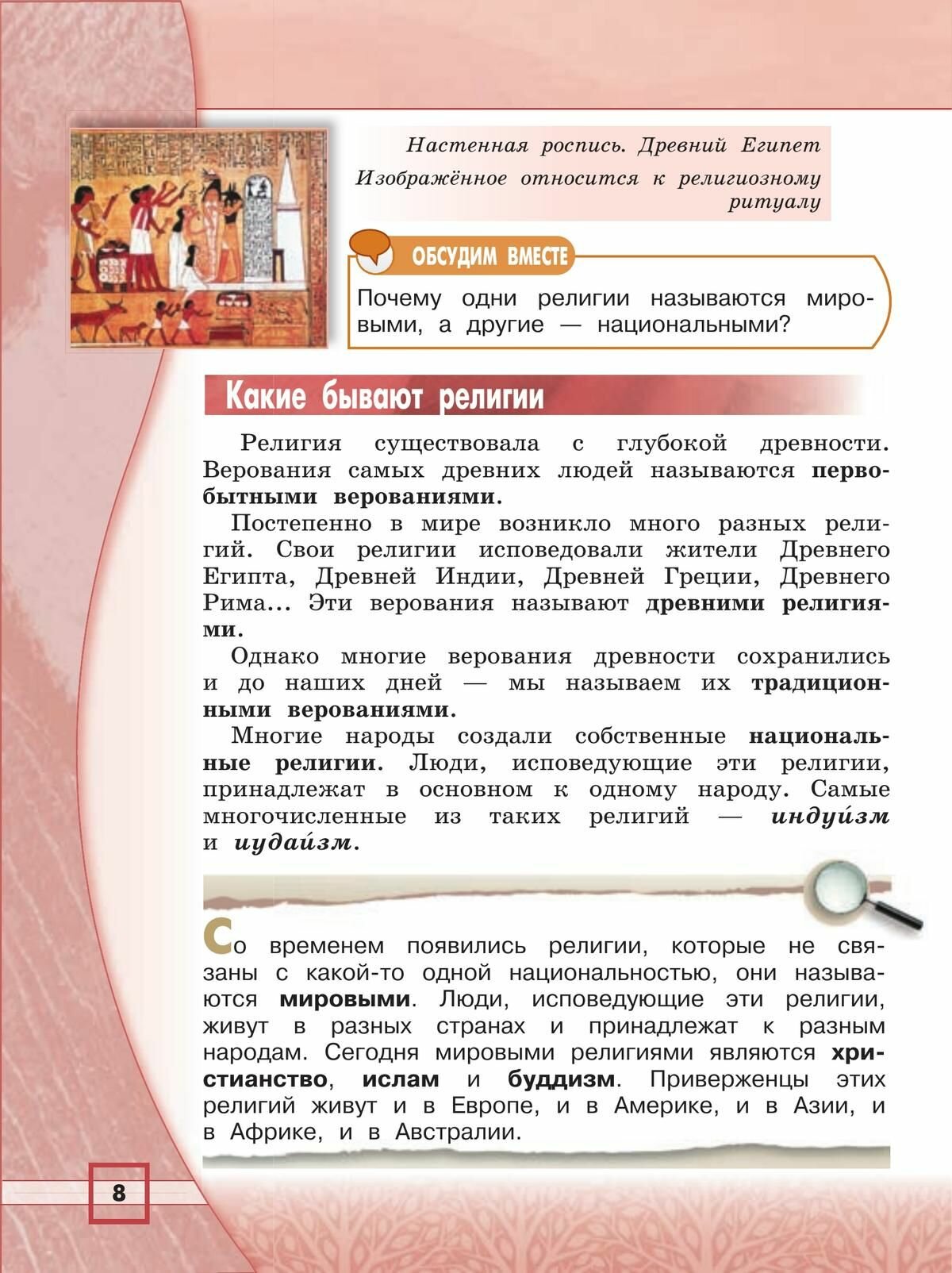 Учебник соответствует ФГОС 2021 г. Учебник разработан в соответствии со всеми требованиями ФГОС НОО, утверждённого приказом Министерства просвещения № 286 от 31.05.2021г. В учебнике с учётом возрастных особенностей учащихся 4 класса даются элементарные представления о возникновении, истории и особенностях религий мира, их влиянии на жизнь людей. Авторы не ставили задачу отражения в учебнике дискуссионных вопросов религиозных учений и религиоведения.