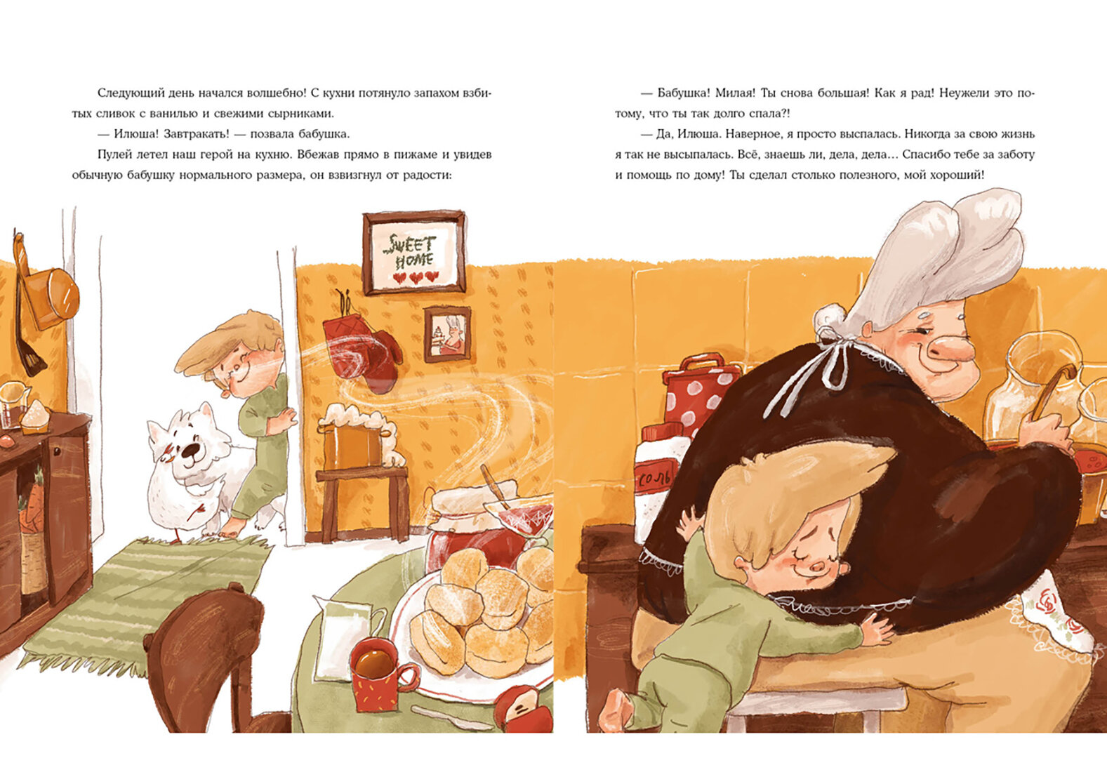Впервые увидев книгу в интернете, меня заинтересовали иллюстрации - добрые, трогательные картинки, на которых такая милая, тёплая бабушка. Одной из причин для покупок стало именно это. Но как приятно было прочитать такую мудрую и поучительную историю! Ведь очевидные вещи считаются обыденные и важно иногда напомнить не только ребёнку, но и себе, насколько важно помогать и заботиться о близких и дорогих нам людях!