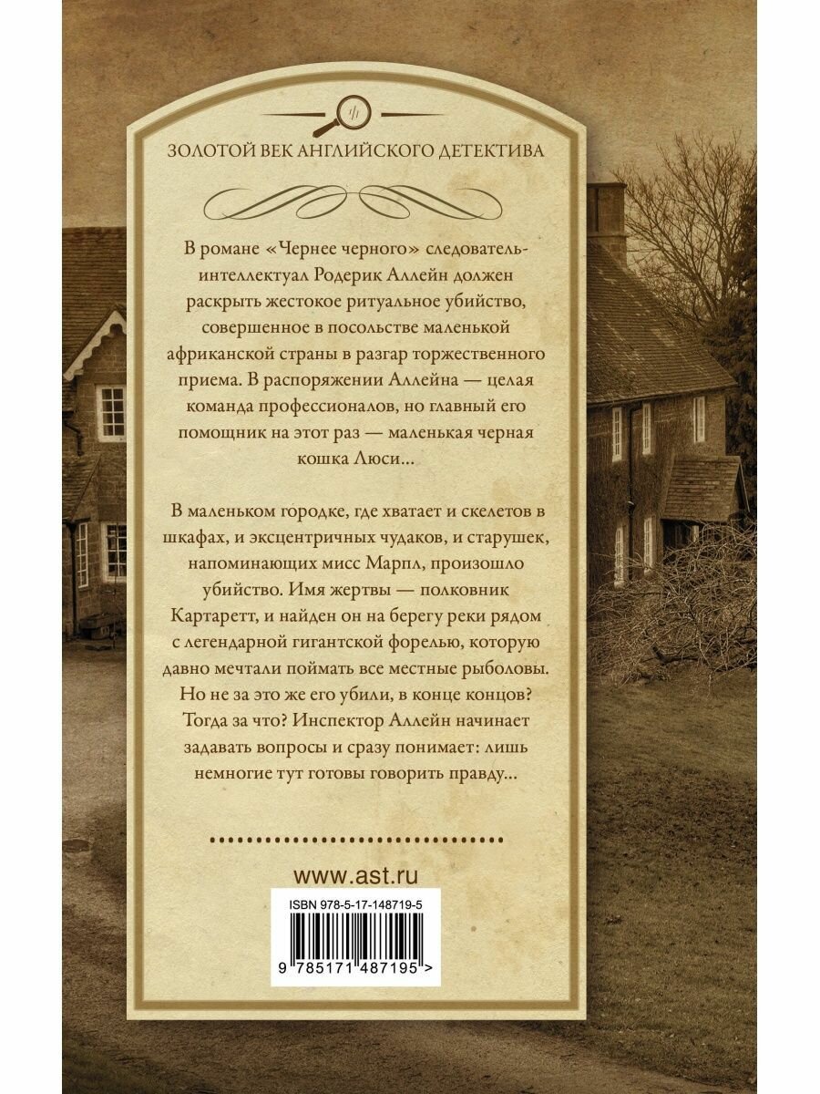В романе «Чернее черного» сыщик-аристократ, денди, интеллектуал Родерик Аллейн вынужден был подключиться к расследованию убийства в посольстве некой африканской страны только потому, что в детстве оказался однокашником паренька, ныне ставшего ее президентом. Очень тонкая, щекотливая и мучительная работа, в которой изворачиваться пришлось всем, от дипломатов и службы безопасности до Скотланд-Ярда. Дело осложнялось как тяжелым характером самого президента, не желавшего выносить сор из избы и прислушиваться к службе охраны, так и тем, что принцип экстерриториальности связывал руки англичанам. Писательница, к счастью, жила еще в те благословенные времена, когда вещи назывались своими именами, в частности черное черным, без оглядки на искусственные барьеры толерантности и BLM века XXI-го, оттого так жизненно описаны многие коллизии. Аллейн, как всегда, с честью выходит из положения, хотя седых волос наверняка у него прибавилось.