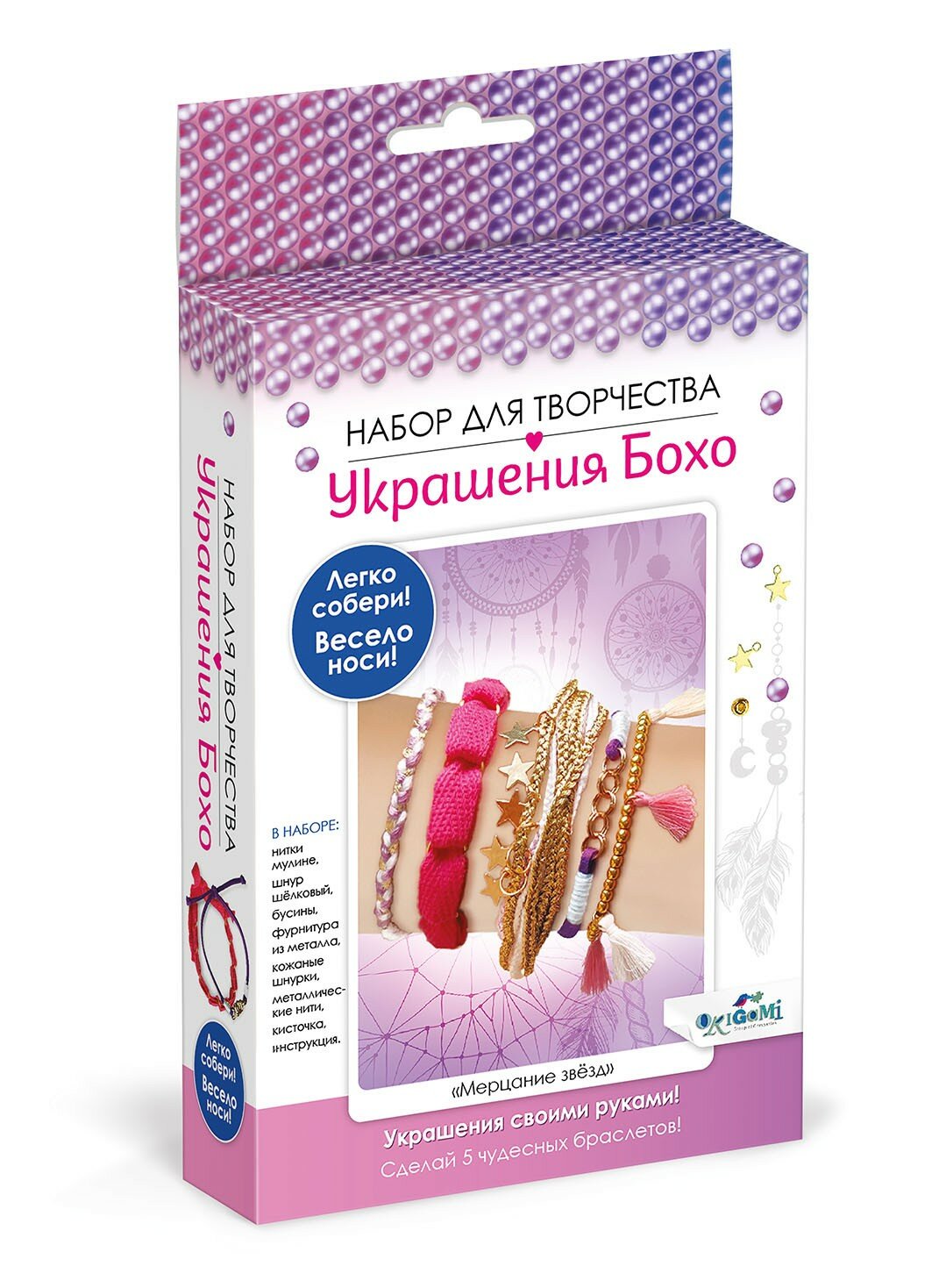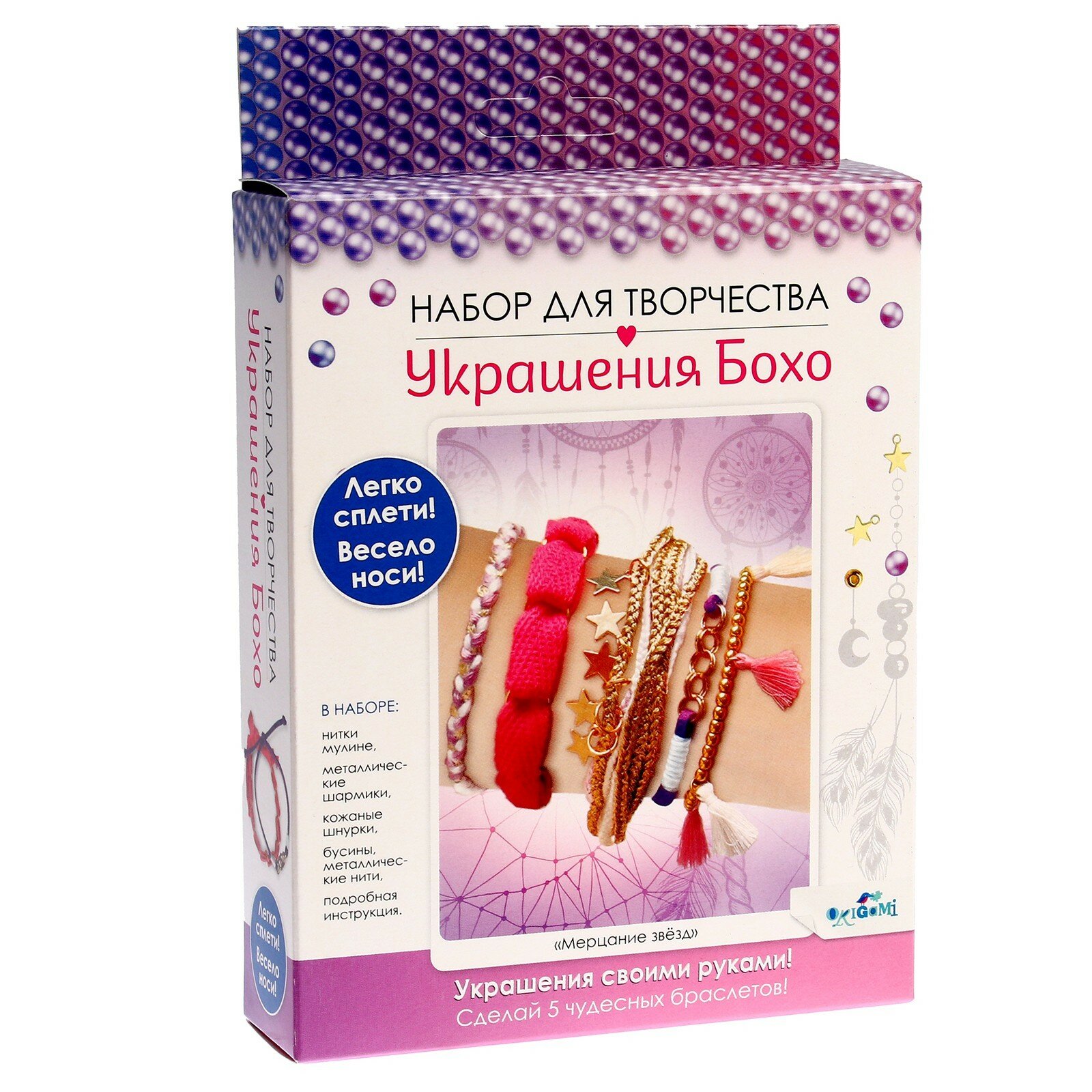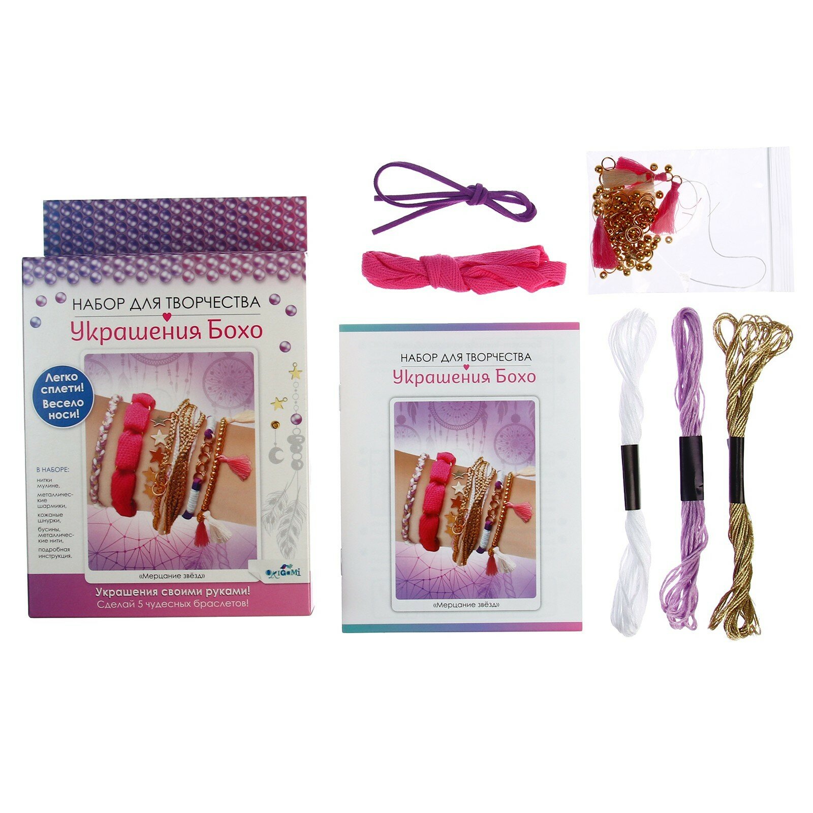 Набор для создания украшений Бохо. Мерцание звезд 5 браслетов ОРИГАМИ