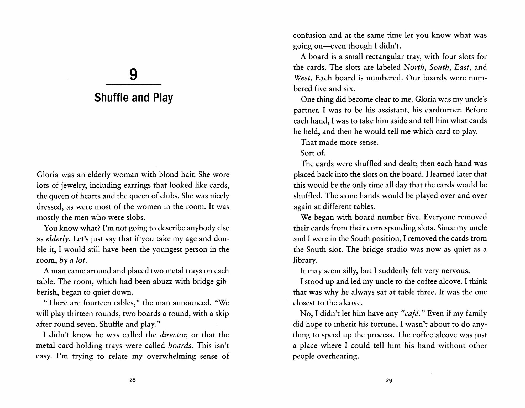 When Alton's ageing, blind uncle asks him to attend bridge games with him, he agrees. After all, it's better than a crappy summer job in the local shopping mall, and Alton's mother thinks it might secure their way to a good inheritance sometime in the future.