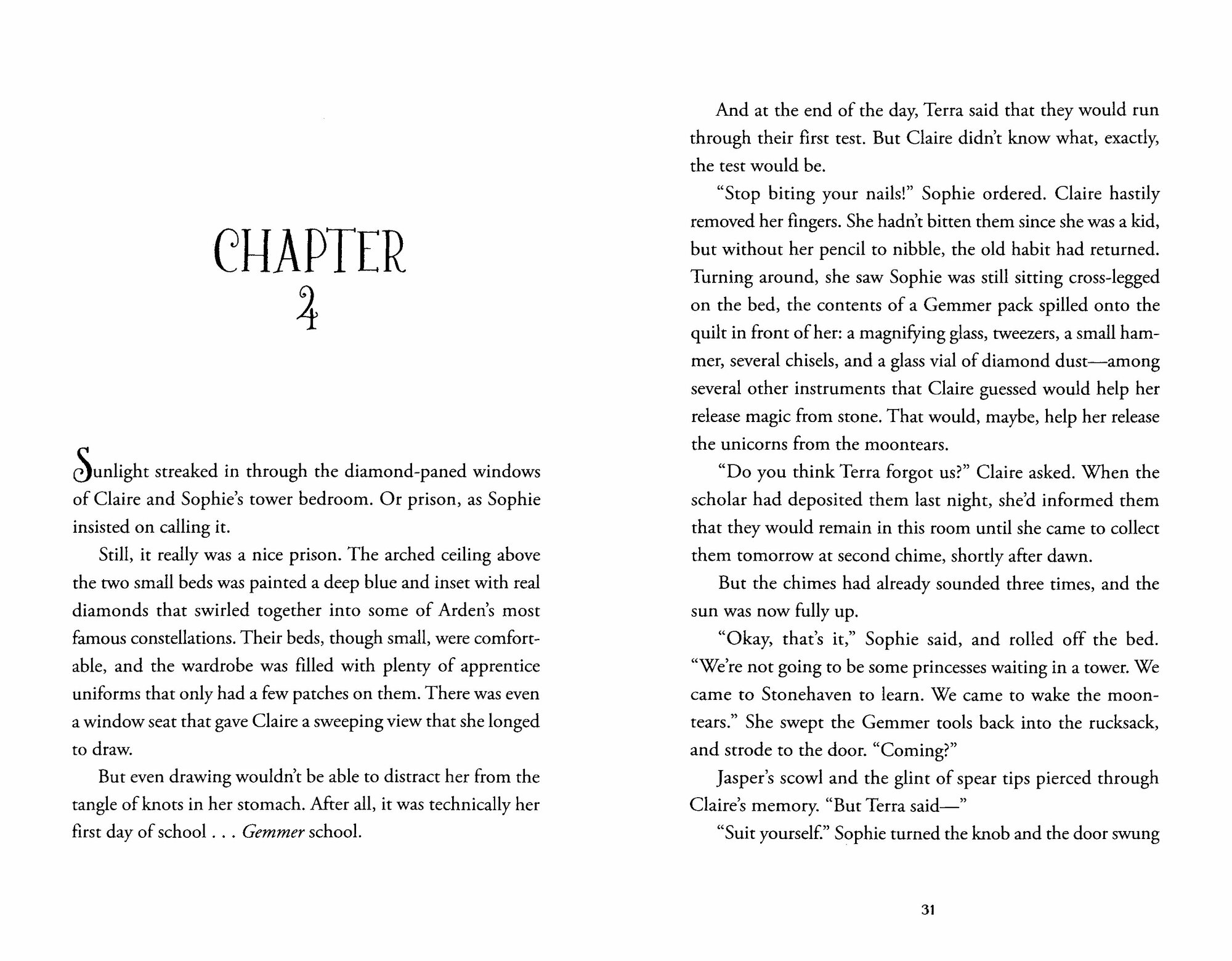 Claire Martinson and her sister Sophie are fighting to save Arden, the magical land they discovered by climbing up a chimney in their late aunt's house. They are the last descendants of Prince Martin of Arden, and only a prince or princess – with magic in their blood – can awaken the lost unicorns.