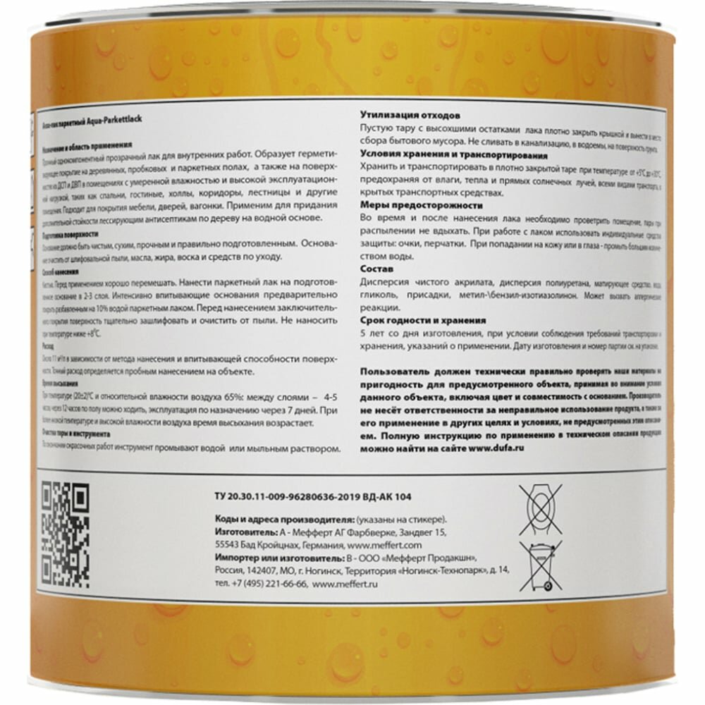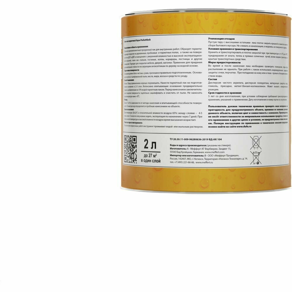 лак в/д DUFA Aqua Parkettlack для паркета 2л полуматовый арт.МП00-010312 AQUA-PARKETTLACK