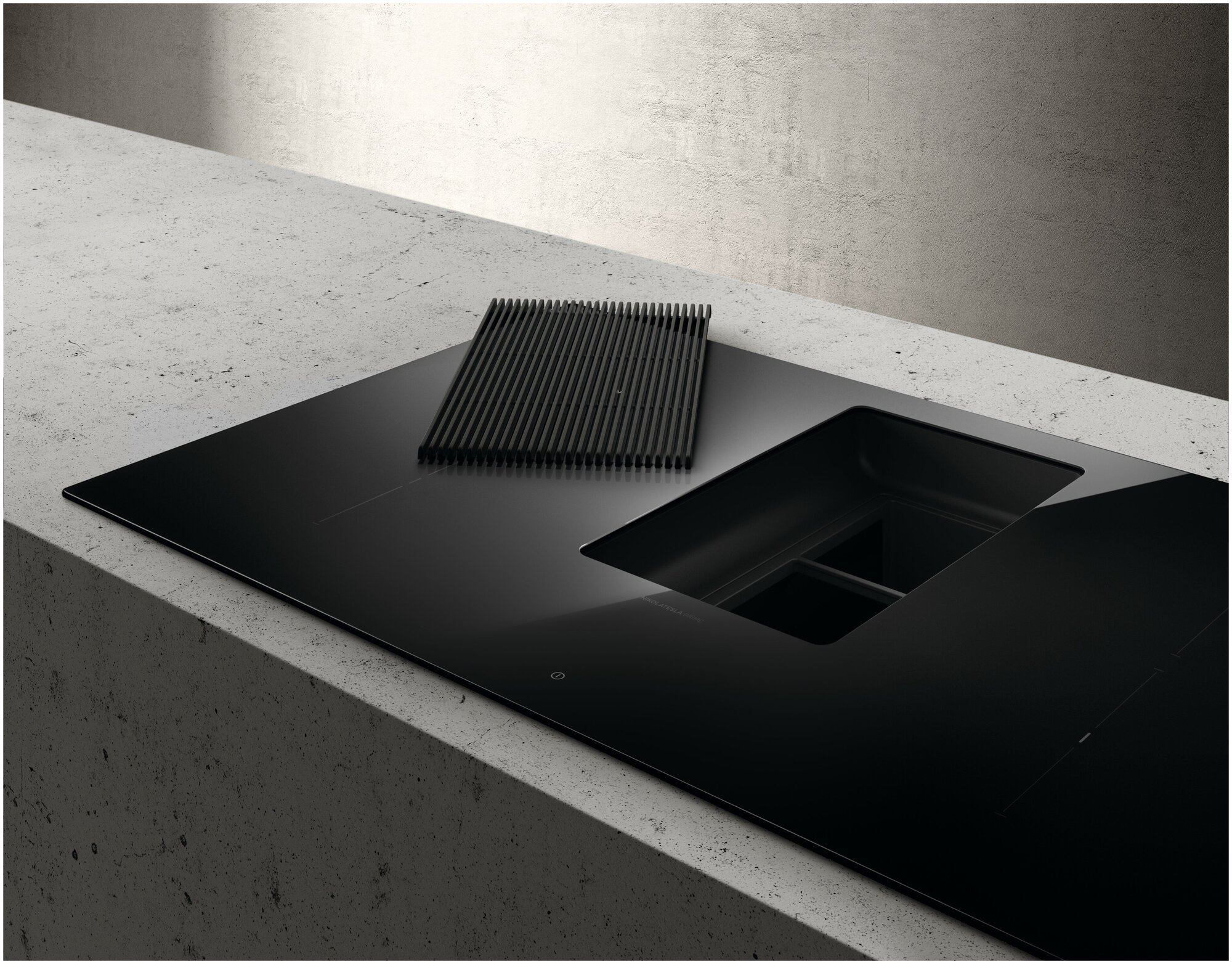 NikolaTesla сочетает два элемента, которые обычно разделены на кухне: плита и вытяжка. Центральная часть плиты выполняет функцию вытяжки, при этом гарантирует максимальную энергоэффективность и обеспечивает высокую производительность. 4 варочные зоны скрываются под закаленным черным стеклом, а прочная, но элегантная решетка в центре прячет мощную вытяжку, которая может работать в автоматическом режиме благодаря технологии Autocapture. Выбор прочного материала типа чугуна обеспечивает дополнительную функцию этой зоне: если она не используется как вытяжка, то становится удобной опорой для кастрюль, даже горячих, или любых других предметов.