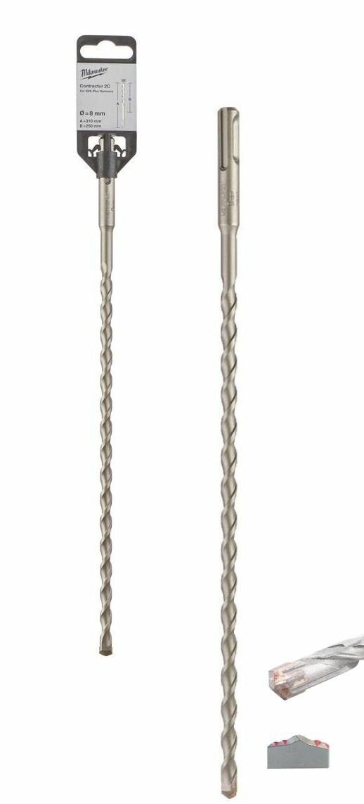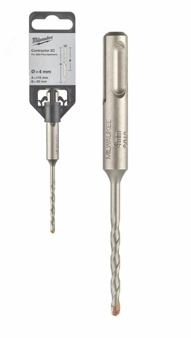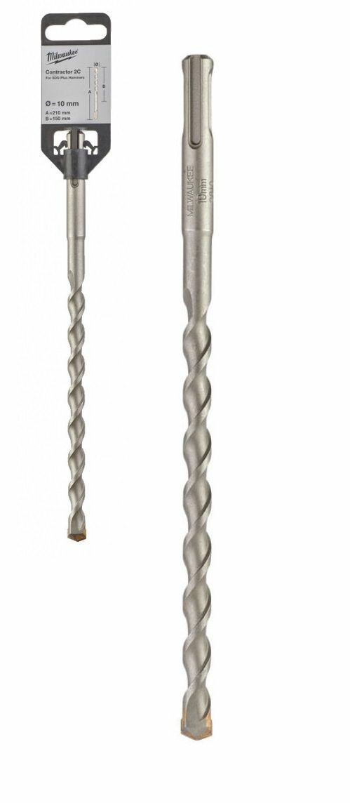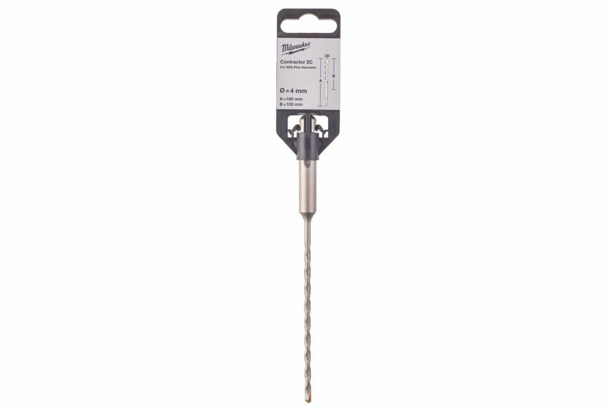 Бур SDS-plus Milwaukee CONTRACTOR 10x160мм (4932471233) с 2 режущими кромками. Двухспиральная конструкция шнека для эффективного удаления шлама.