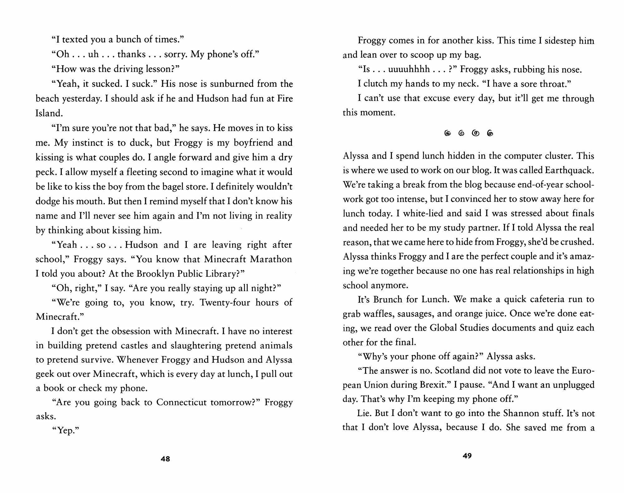 But then police come to their apartment and arrest Byron. As Virginia tries to figure it all out, she meets Sebastian – a guy with his own private drama. They make a pact not to talk about their troubles, but then a terrible secret comes out that could ruin everything.