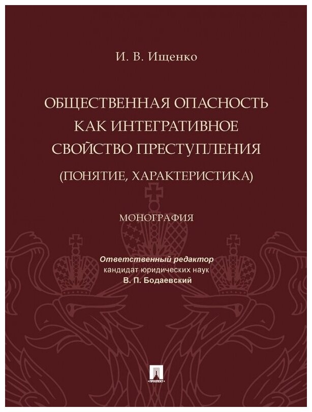 Общественная опасность как интегративное свойство преступления (понятие характеристика). Монография (Ищенко И.В.,отв.ред.Бодаевский В.П.); Проспект, 2023