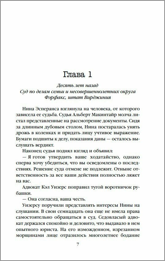 – А почему «Геррера»? – полюбопытствовал судья. – Guerrero – по-испански «воин», «боец». А guerrera – с буквой «a» на конце – то же самое, только про женщину. Мгновение судья обдумывал ее слова. В его глазах сверкнуло понимание. – Воительница, значит? Нина качнула головой в знак согласия. – Надежду я оставила в прошлом, – тихо сказала она и, вздернув подбородок, добавила: – Отныне я сражаюсь.