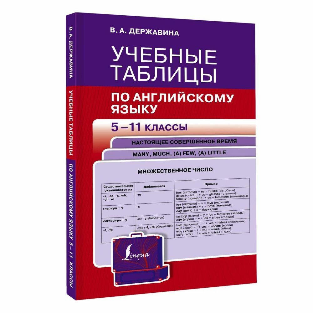 В каких случаях употребляется Past Simple, а в каких – Past Perfect? В чем разница между a few и a little и что такое герундий? Если школьника мучают эти вопросы, то "Учебные таблицы по английскому языку. 5-11 классы" – для него. Благодаря этому справочнику, который написан В. А. Державиной, одним из самых популярных авторов пособий по английскому языку, ученик разберется в правилах и сможет быстро их повторять.