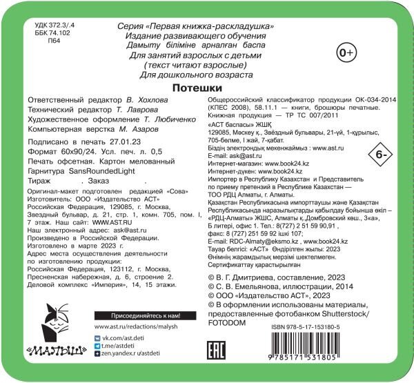 Сервис сравнения цен СкидкаГИД предлагает сравнить цены на товар «Книга: Потешки (Дмитриева Валентина Геннадьевна); Сова. Малыш (Обучающая и развивающая литература), 2023»