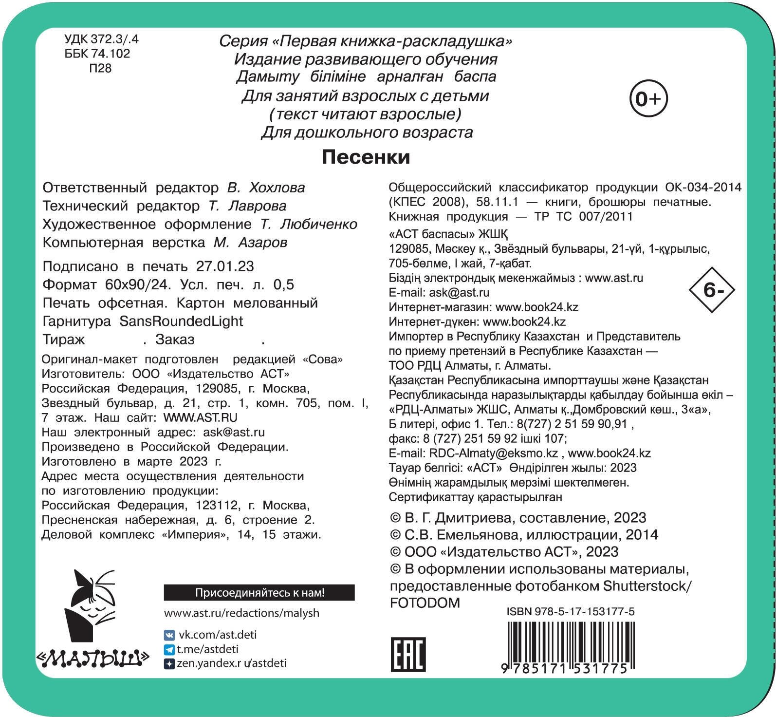 Книга: Песенки (Дмитриева Валентина Геннадьевна); Сова. Малыш (Обучающая и развивающая литература), 2023