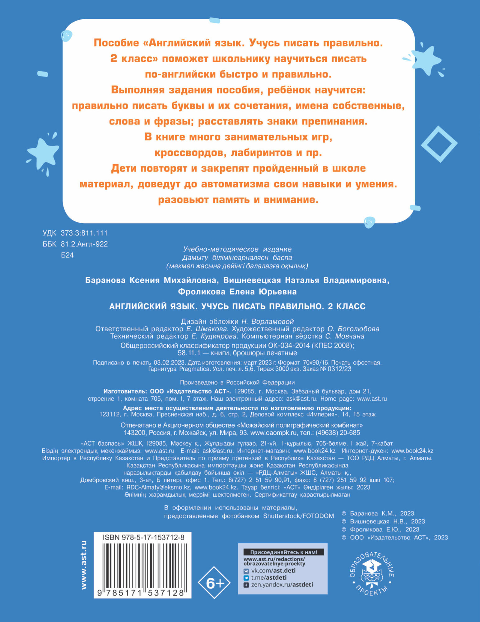 Сервис сравнения цен СкидкаГИД предлагает сравнить цены на товар «Книга: Английский язык. Учусь писать правильно. 2 класс (Пазин Михаил Сергеевич, Фроликова Елена Юрьевна, Баранова Ксения Михайловна); Образовательные проекты, 2023»