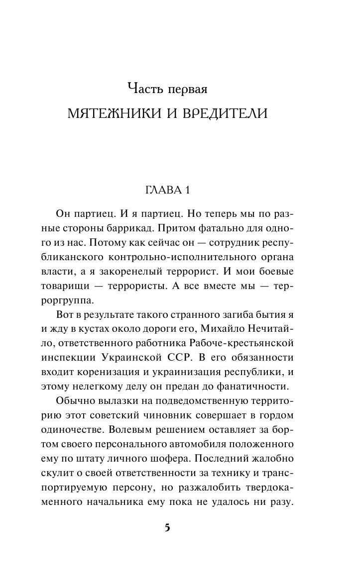 Вот только ни одна живая душа в банде не догадывается, что у тех хлопцев на уме и почему они, уничтожив какого-нибудь упитанного представителя новой советской власти, словно ставят галочку в некоем невидимом, секретном и очень длинном расстрельном списке…