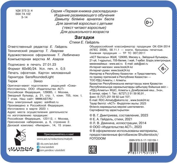 Сервис сравнения цен СкидкаГИД предлагает сравнить цены на товар «Книга: Загадки (Гайдель Екатерина Анатольевна); Сова. Малыш (Обучающая и развивающая литература), 2023»