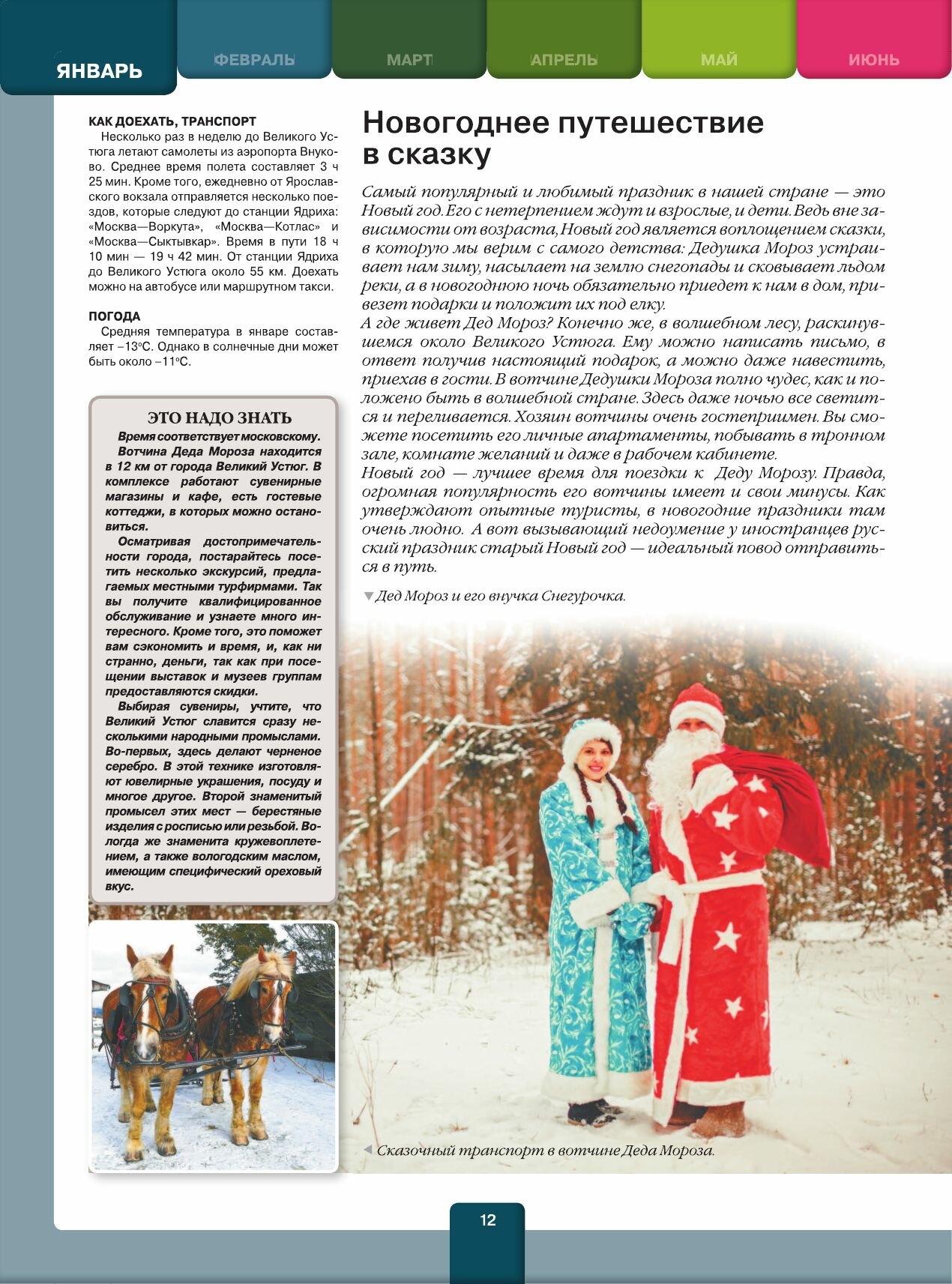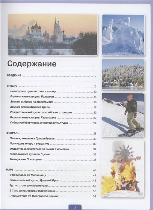 Вам выбирать, поехать на зимнюю рыбалку к чистейшему озеру Байкал или на Масленицу в Ярославль, стать участником праздника цветов в Баку или встретить полярное сияние на Кольском полуострове. Вы можете совершить экскурсию по городам Золотого кольца или паломническую поездку по монастырям и храмам Святой Руси, отправиться в круиз по Волге или в пеший поход по окрестностям озера Иссык-Куль. Но кто-то, несомненно, захочет отдохнуть на лучших горнолыжных курортах Карачаево-Черкесии и Грузии, Армении и Казахстана или пляжных курортах Краснодарского края и Абхазии. А может быть, кому-то больше по душе музыкальные фестивали в Татарстане или Беларуси. Смело собирайтесь в дорогу, а эта книга поможет вам определиться с маршрутом.