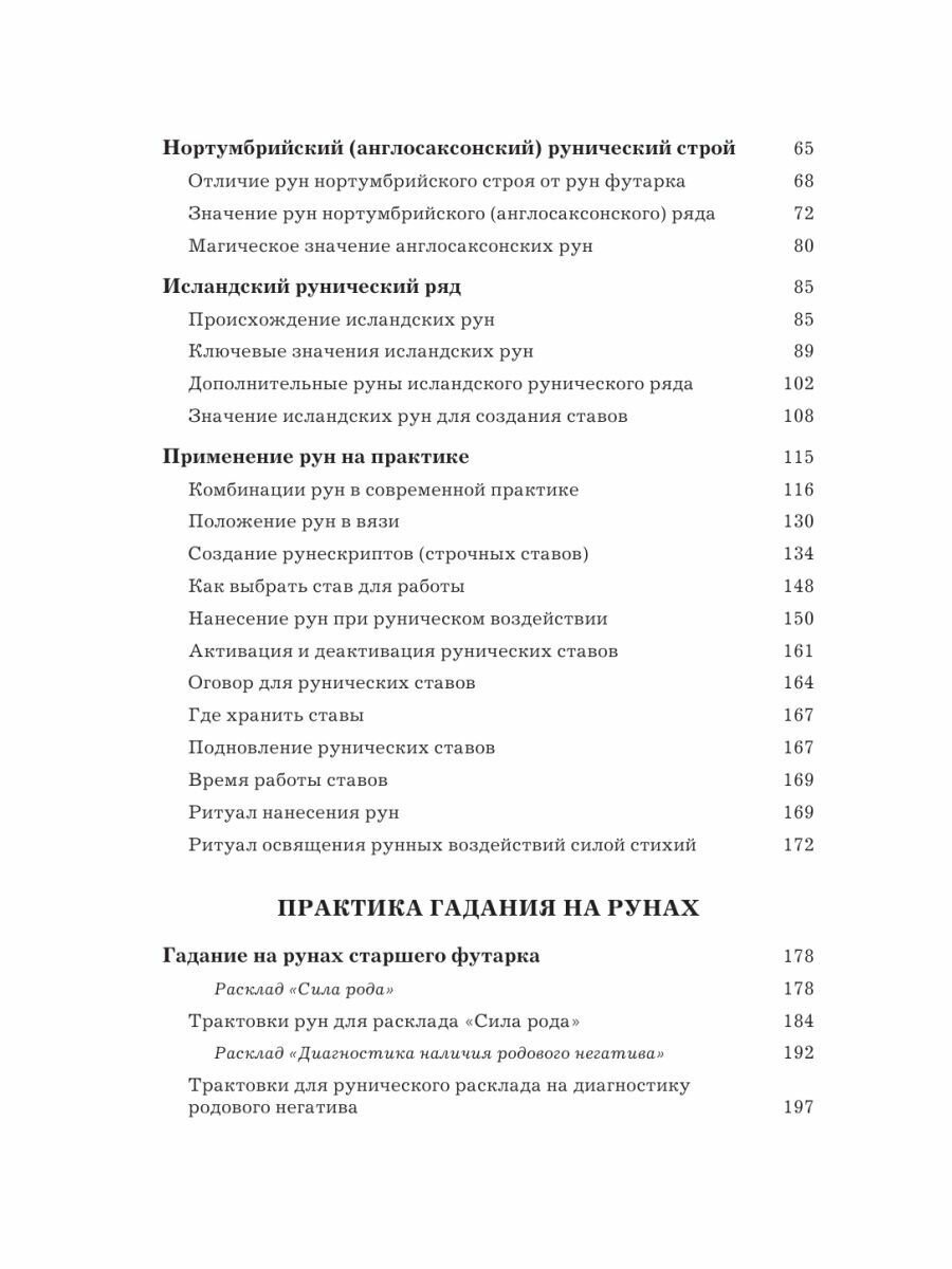 книга собрала в себе всю подробную информацию о рунах старшего футарка, англосаксонских и исландских. книга полезна, как пособие-учебник для новичка, так и для опытных практиков. самое главное что мне понравилось, есть диагностики для определения с описанием. особенно " Сила Рода", "родовой негатив " и для определения эзотерических способностей с трактовкой!
