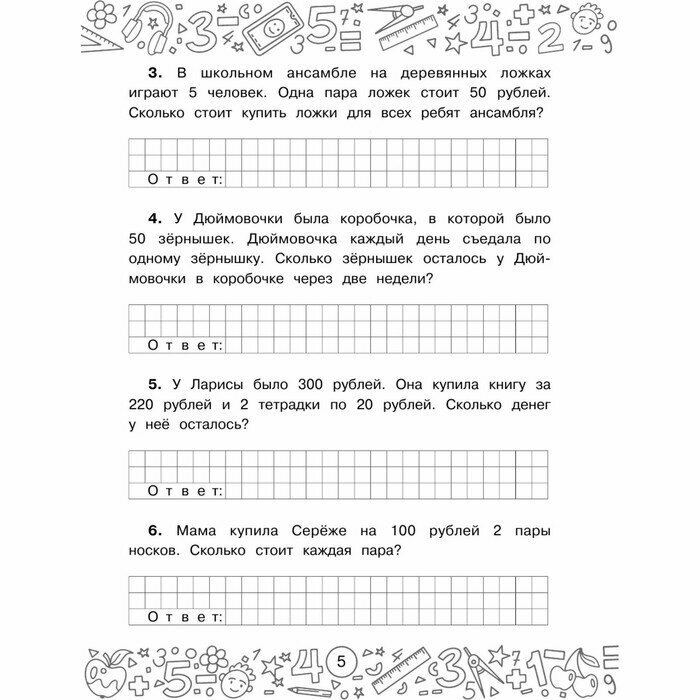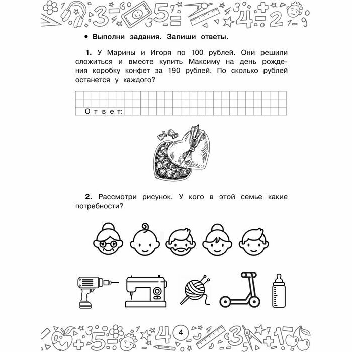 Пособие можно использовать дома для закрепления знаний по финансовой грамотности и математике, а также – в школе для проведения самостоятельных работ, подготовки к олимпиадам, факультативных занятий.