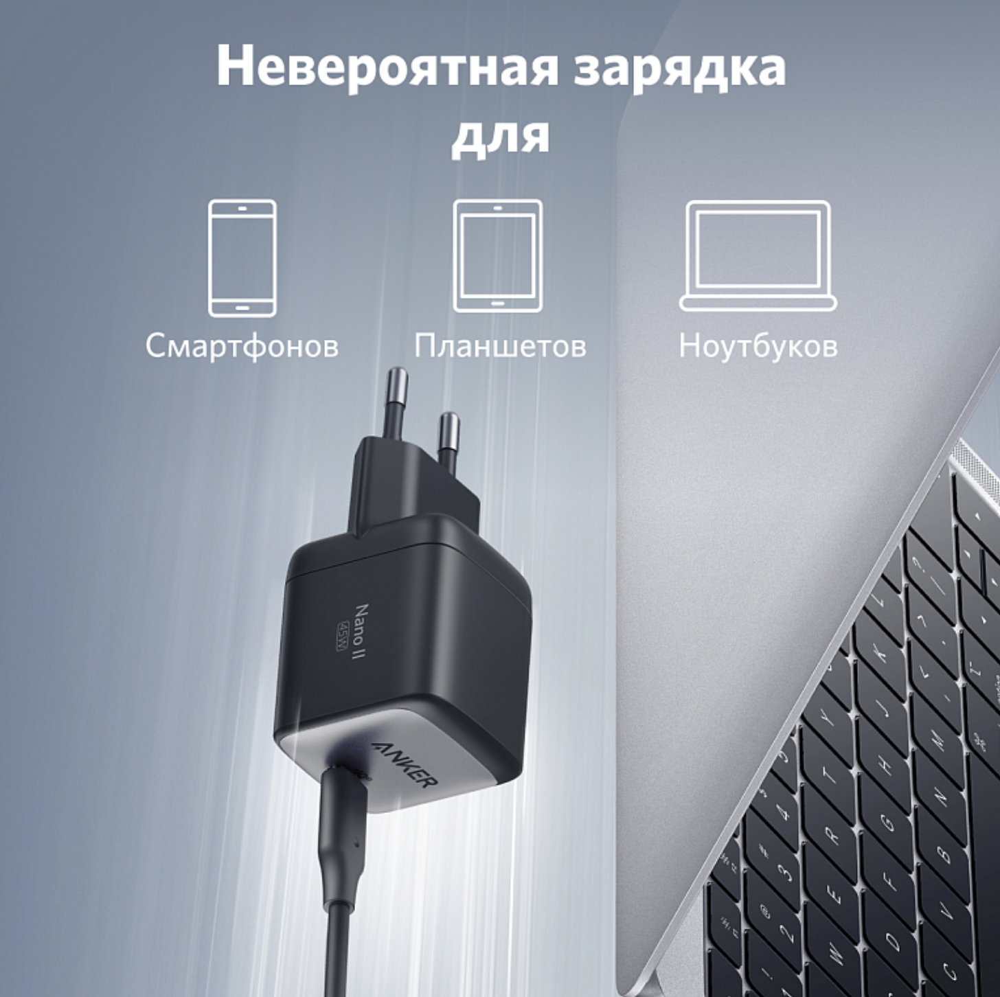 Сетевое зарядное устройство Anker PowerPort Nano II USB-C, 45 Вт черный