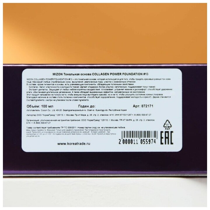 Тональная основа с коллагеном тон 13 100 мл Mizon (ЭХ99989441152)